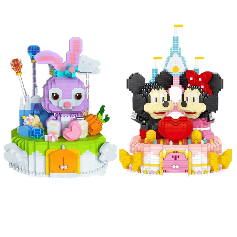 Дисней милый kawaii стеллау день рождения пирог из блоков Минни Микки мини кирпичи замок торт модель фиолетовый кролик алмаз кирпич