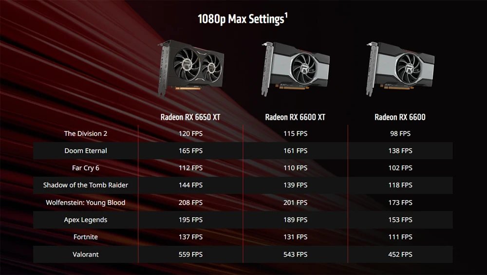 The Radeon™RX 6650 XT, RX 6600 XT и RX 6600 дадут вам представление, которое вам нужно проследить в последних играх. Питание от AMD RDNA™2 архитектура, Radeon™Видеокарты серии RX 6000 невероятно мощные, невероятно эффективные вычислительные устройства, ускорители лучей и Сверхбыстрый кэш-память AMD Infinity™Для обеспечения невероятной производительности, которая хорошо подходит для игр 1080p с максимальными настройками.