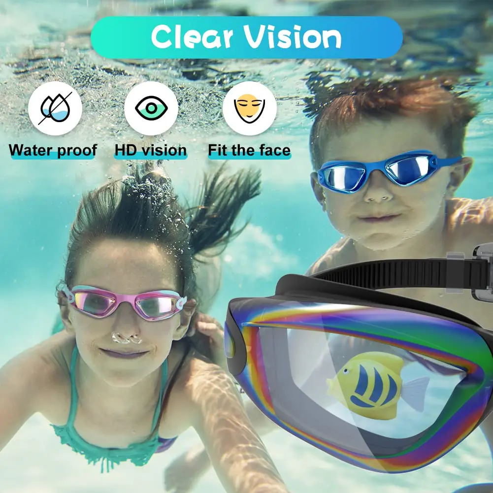 Он имеет лучшую долговечную защиту от тумана, лучшую водонепроницаемость, лучшую защиту от царапин, 100% УФ-защиту, специально разработанную для детей От 3 до 14 лет, 3D интегрированная уникальная рамка предназначена для обеспечения четкого подводного мира 180 градусов широкий угол действительно беспрепятственно. Доверяйте нам, детям понравится, мы больше ориентируемся на опыт плавания детей.