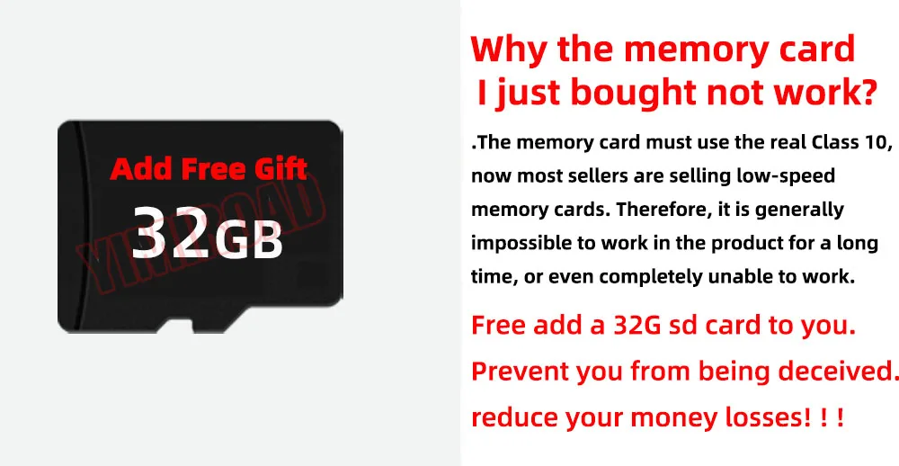 We will free add a real class 10 32G sd card to you,to prevent you and your customers from being deceived,reduce the loss of money for you !!!