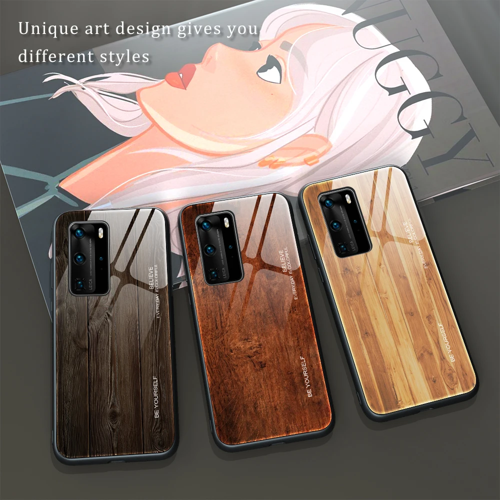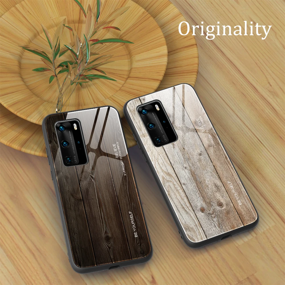 Wood Grain Tempered Glass Mobile Phone Case For Huawei Mate40Pro 30Lite 30Pro 20Pro 20Lite P50Pro P40Pro P40Lite P30Pro P20Pro