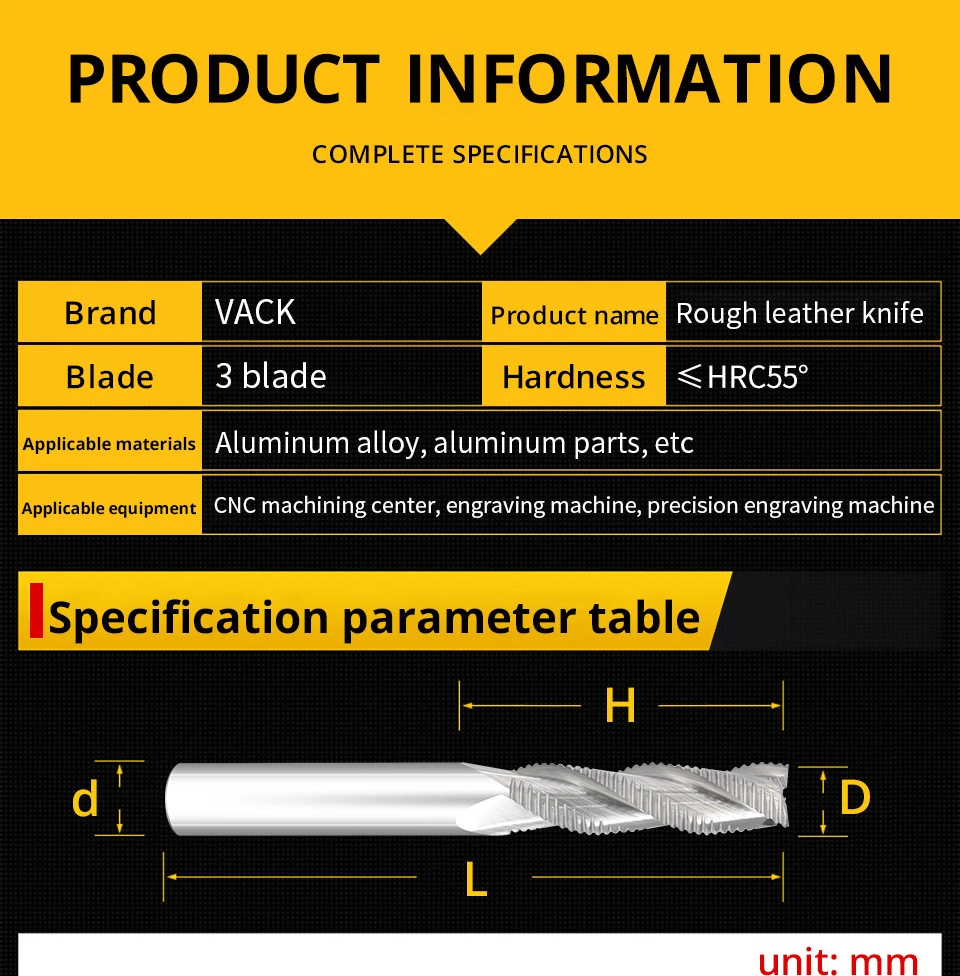 VACK HRC55 Концевая фреза твердосплавные 3 флейты для стали, железа, алюминия, акрила, дерева фреза 6 10 12 мм фрезерные инструменты с ЧПУ