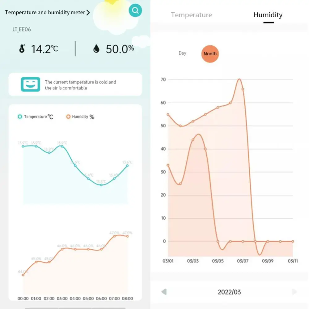 -Индикатор Air omfort: значки уровня указывают на комфорт воздуха, отлично подходит для мониторинга условий жизни и здоровья семьи.