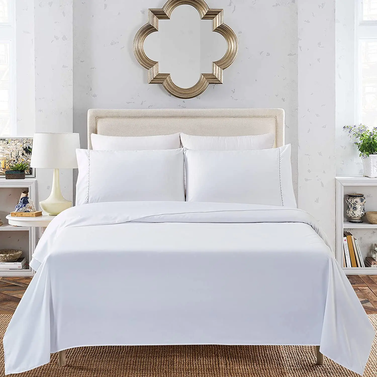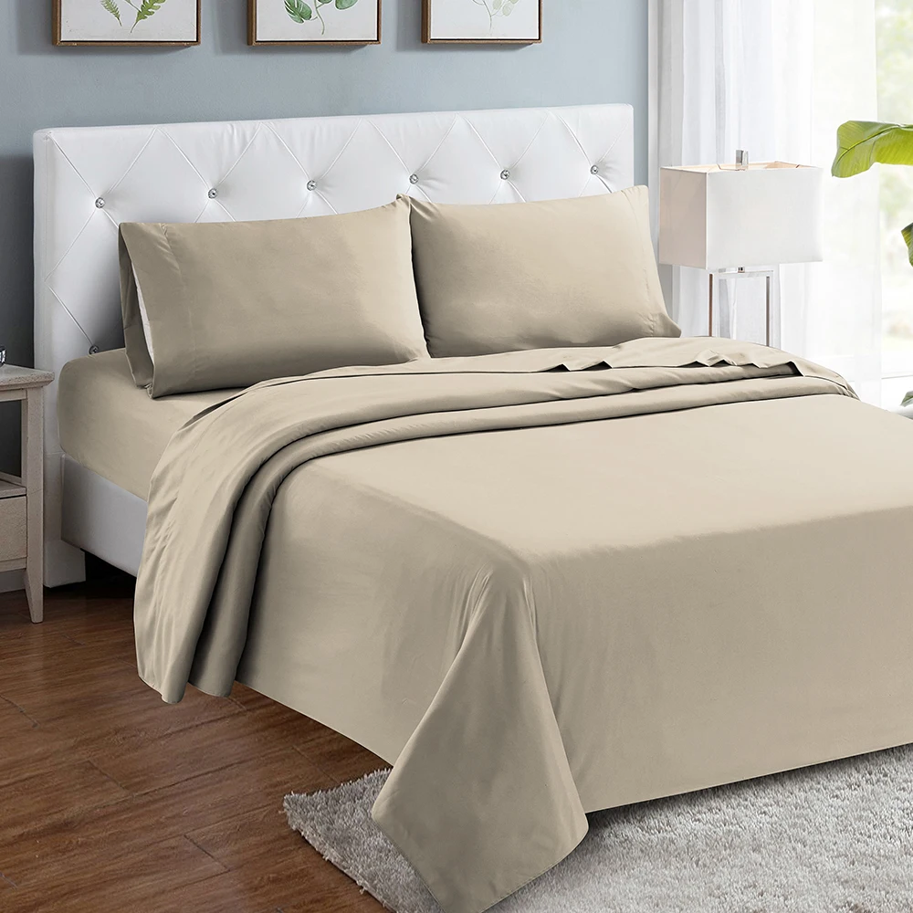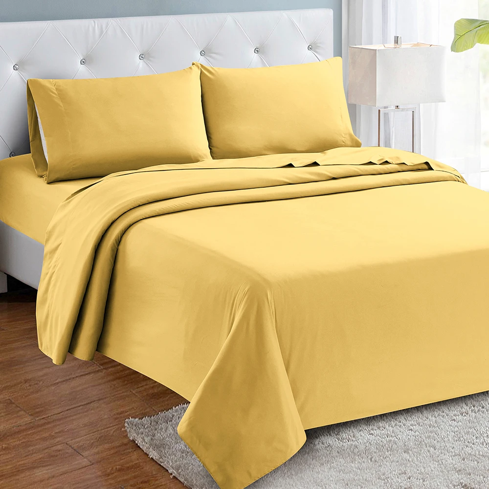 Плотная ткань: 90GSM плотная ткань King Queen, полный набор листов двойного размера, более удобные и долговечные, чем 75GSM наборы листов на рынке. 100% микрофибра, без складок, без усадки. Набор листов King Size включает в себя (1) Плоский лист 108x102 дюймов, (1) Натяжной лист 72x84 дюймов-подходит для матрасов 14-17 дюймов и (2) 20x40 дюймов, наволочки для подушек.