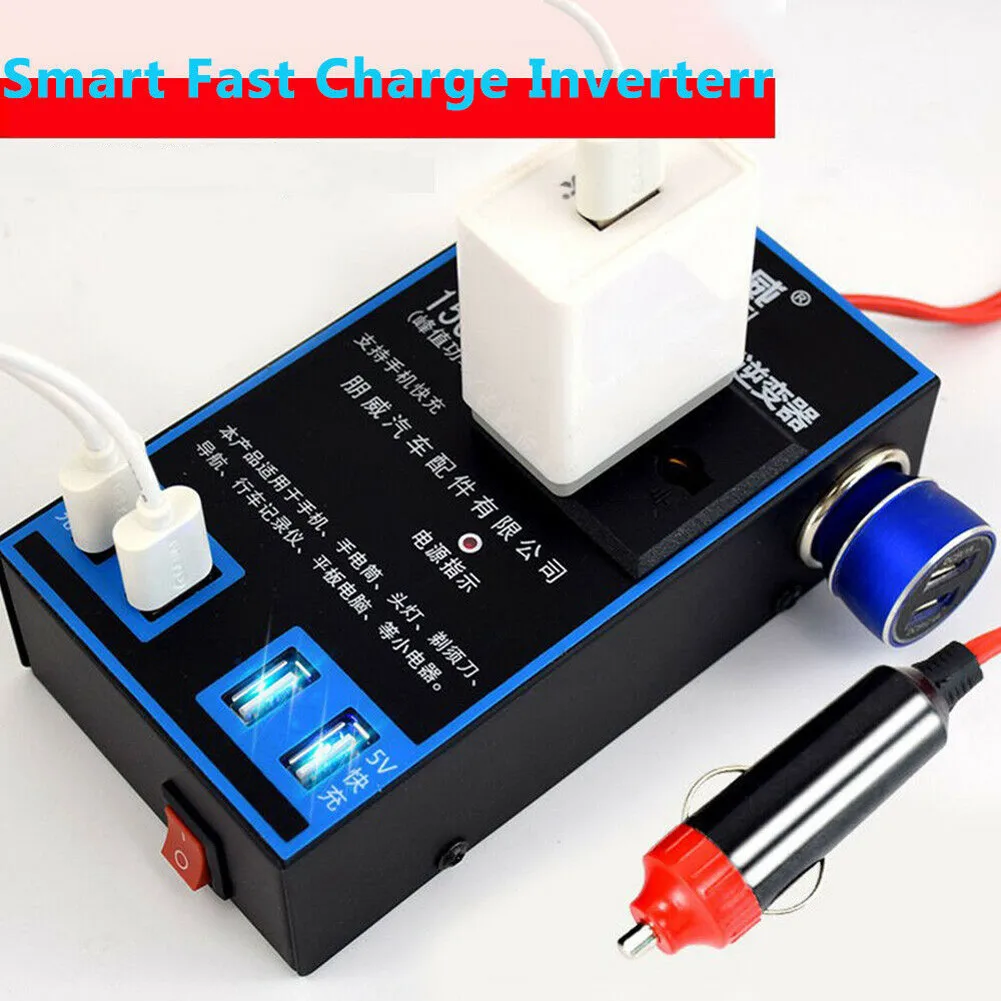 * Многофункциональный автомобильный инвертор, который поддерживает быструю зарядку мобильных телефонов, с собственным высоковольтным гнездом, 4 USB быстрое гнездо зарядки и 2 гнезда прикуривателя.