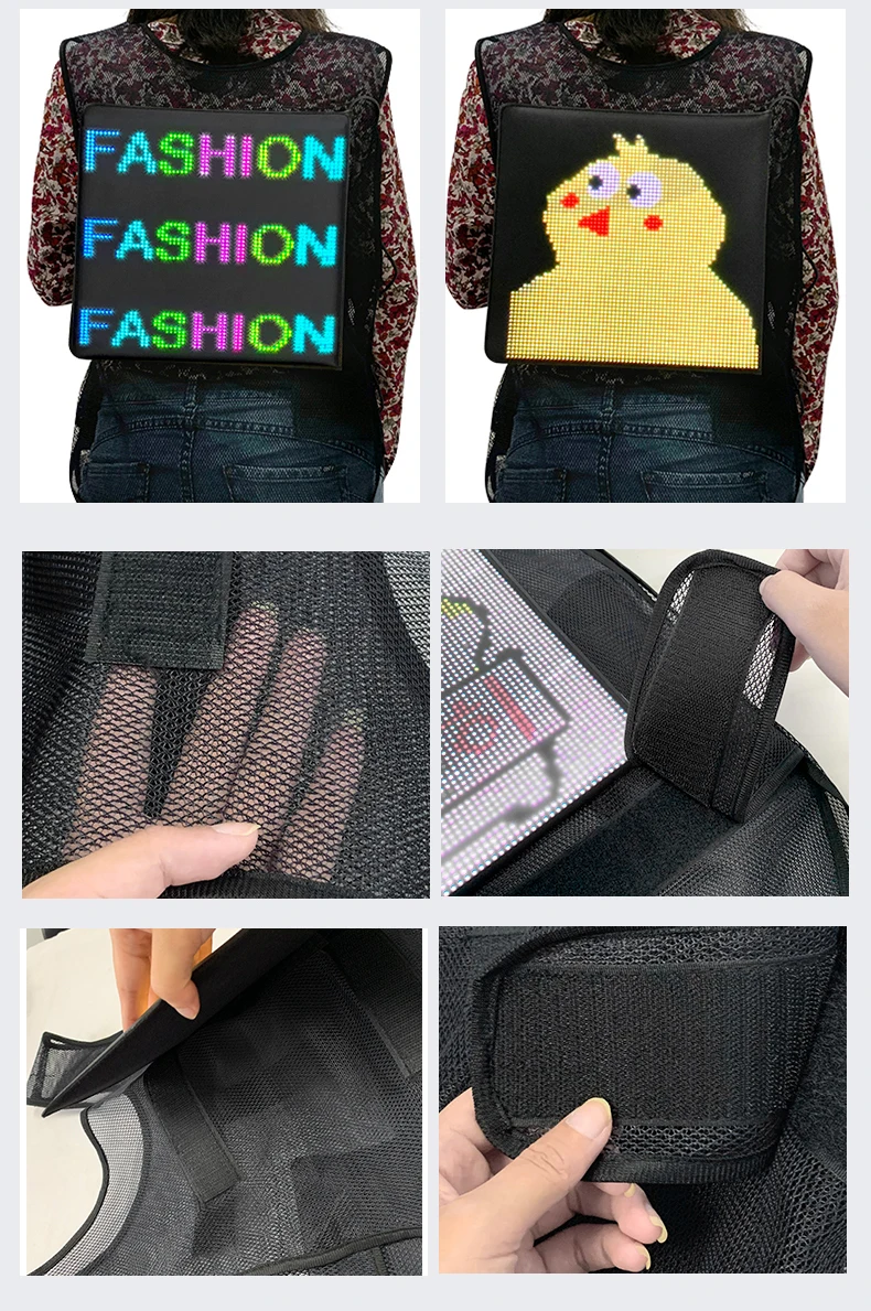 Рекламный светодиодный жилет со светодиодным экраном, беспроводное управление приложением, светодиодный дисплей, одежда, креативный привлекательный светодиодный рюкзак для маркетинга