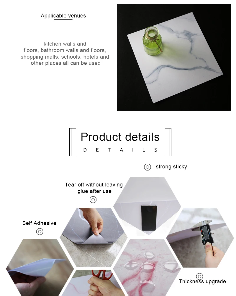 2. Самовозорная палка хорошо прилипает к любой гладкой чистой поверхности над старой плиткой, керамикой, стеклом, металлом, гладкой окрашенной стеной или лакированной древесиной; Водонепроницаемые наклейки используются для зазора любой плитки