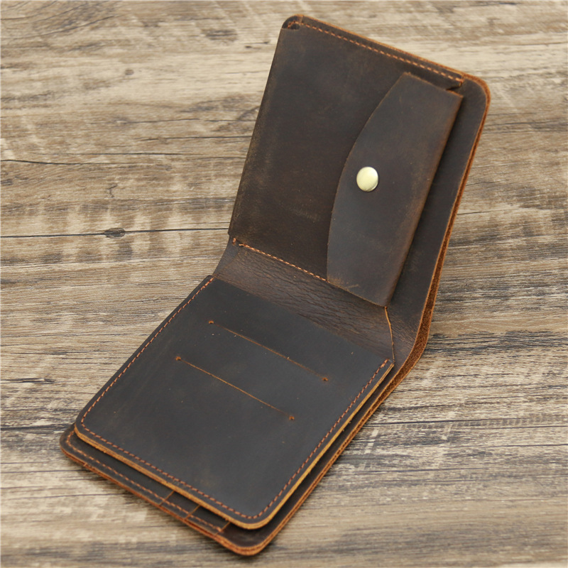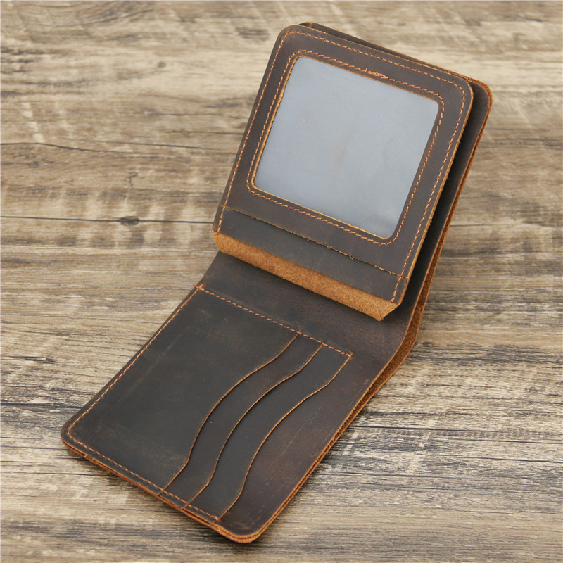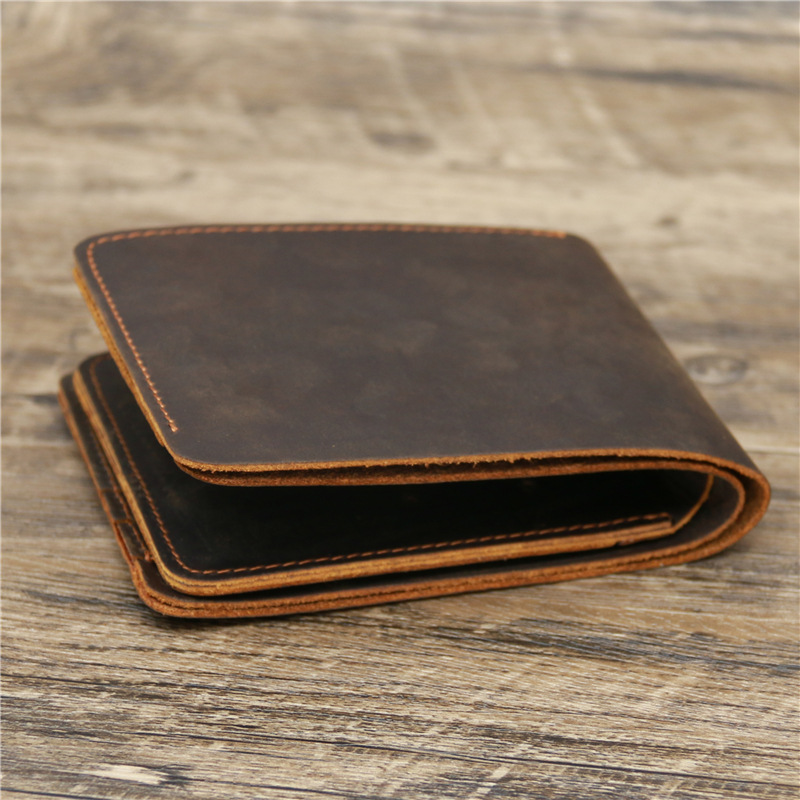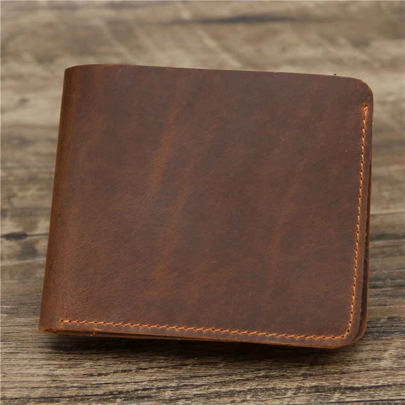 Мужской кошелек в стиле ретро, с отделением для кредитных карт, из натуральной кожи, Деловой, из воловьей кожи, винтажный, Crazy Horse, кожаный короткий кошелек для мужчин