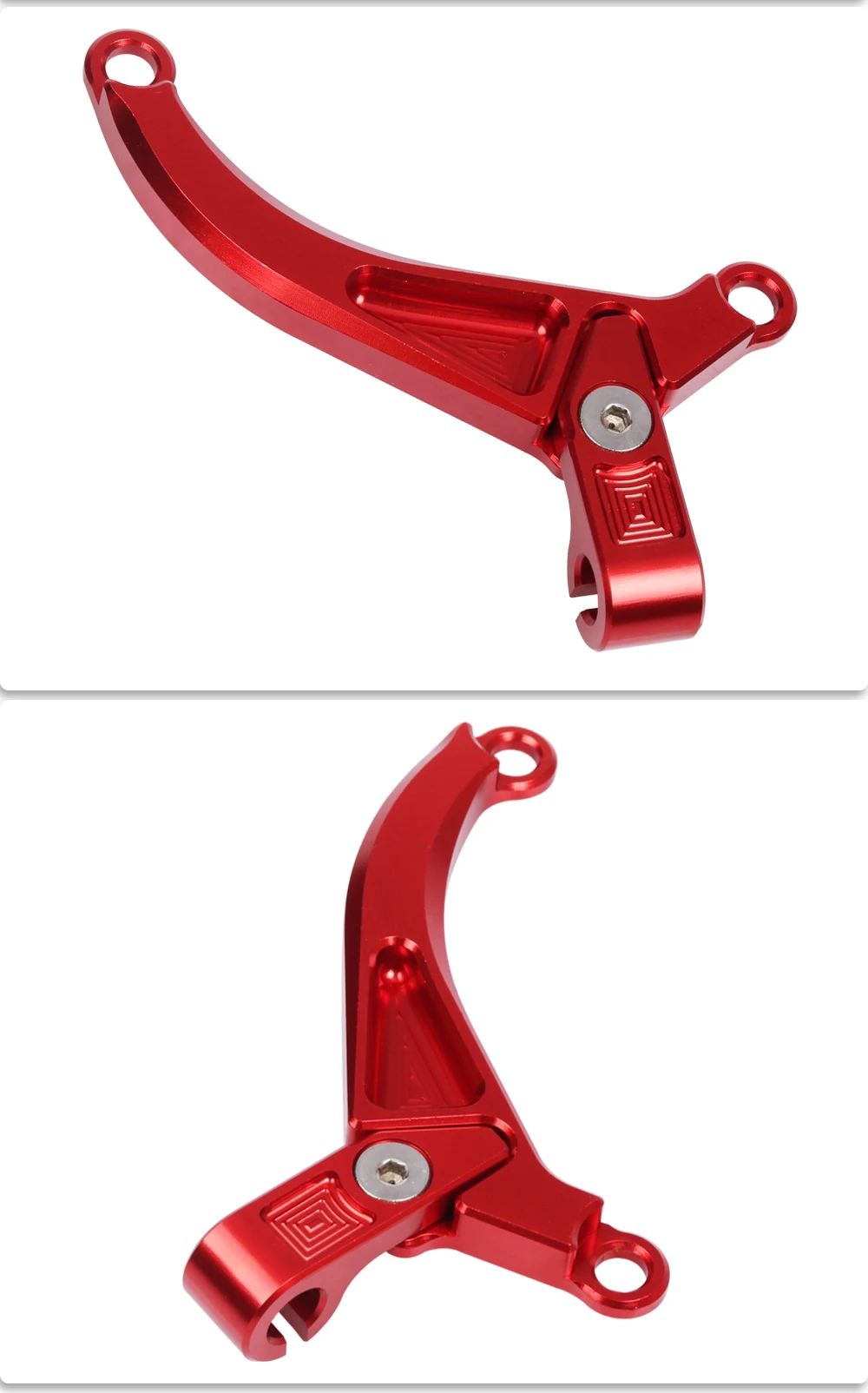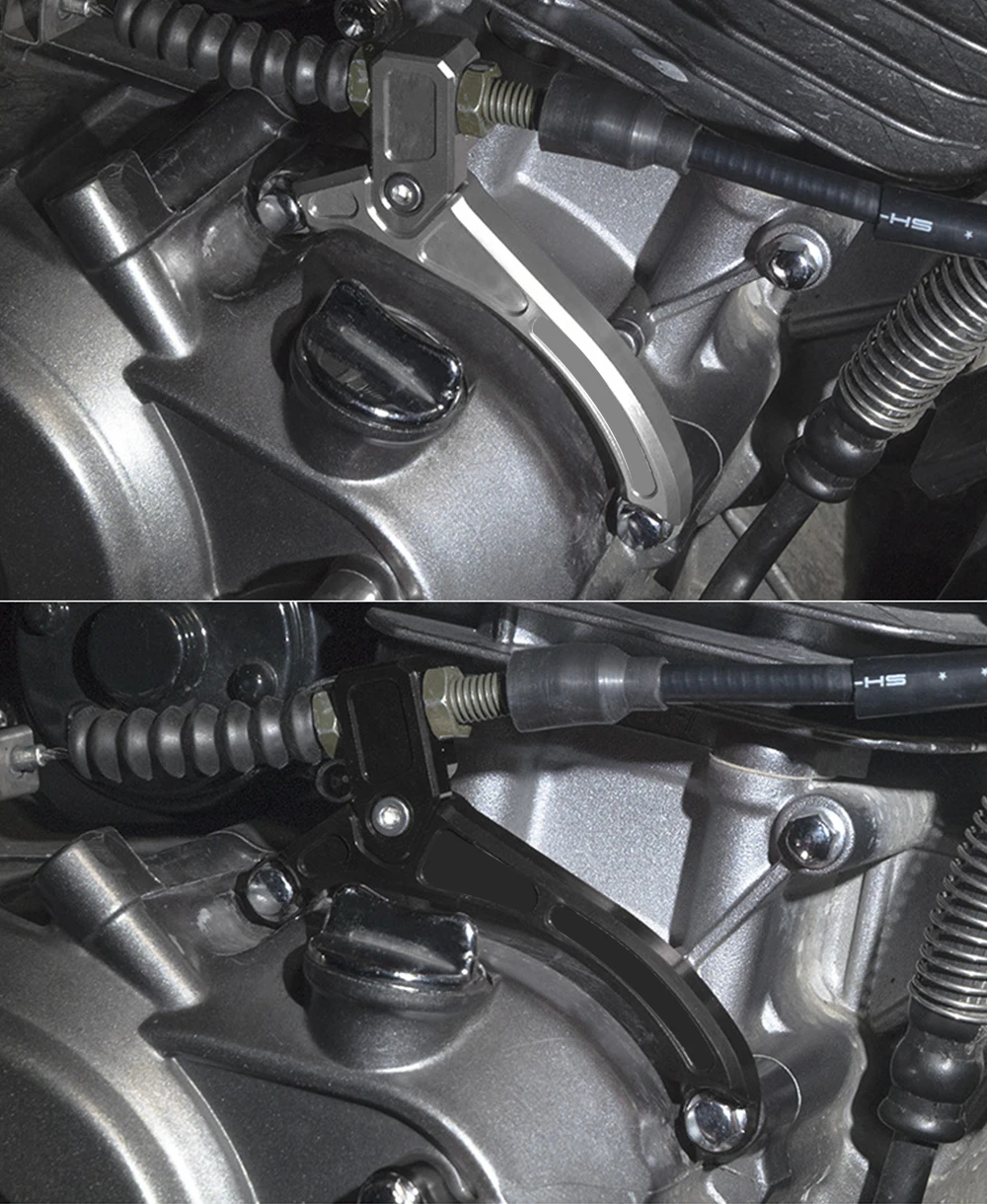 3、Designed to reduce clutch pull, which reduces hand fatigue, and increase the feel of the clutch The Clutch Arm Extension replaces the OEM clutch arm with an adjustable clutch arm extension. The extension is CNC machined from 6061 T6 aluminum and anodized black, with clevis clip formed from stainless steel. With the Clutch Arm Extension the clutch pull can be set from stock up to a 33% reduction in pull effort, giving you options for the best clutch feel for the rider.