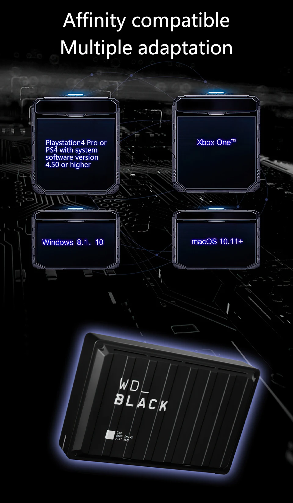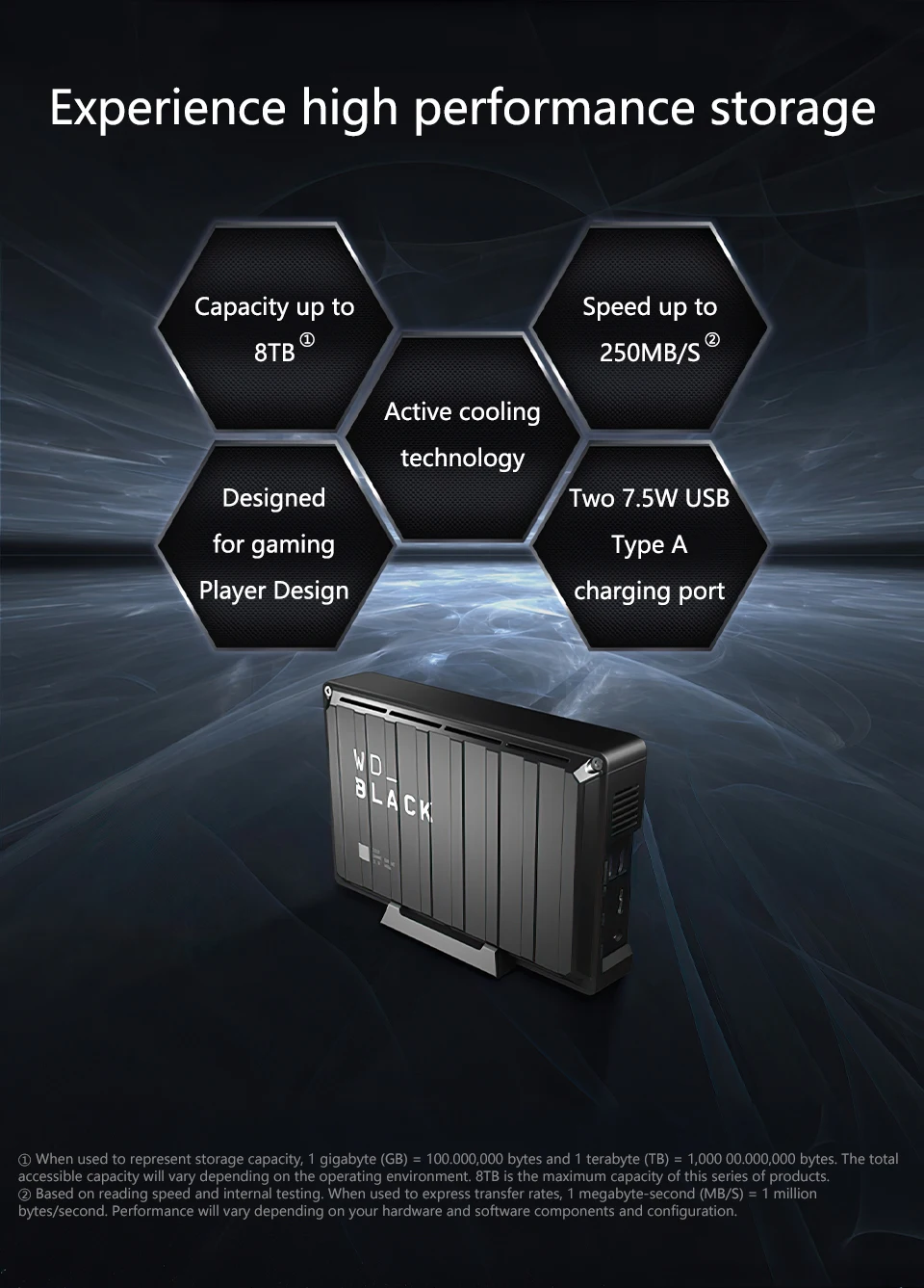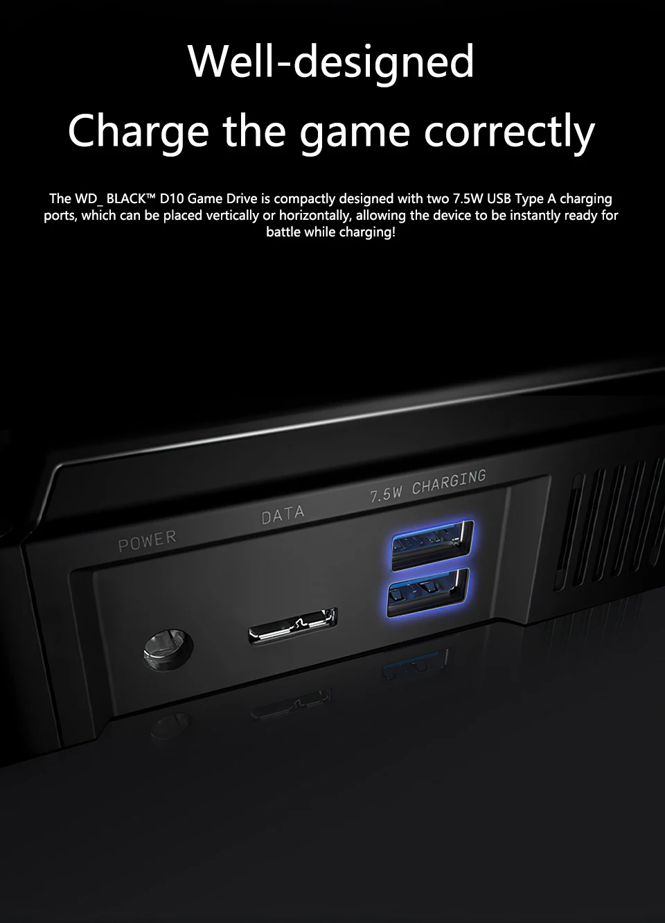 WD_BLACK™Игровой диск D10, кабель USB Type-A-Micro-B, адаптер переменного тока и штекер, Руководство по быстрой установке