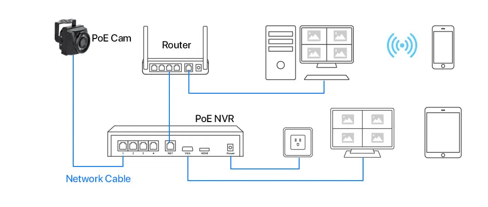 Питание через Ethernet означает, что ip-камеры подключаются к одному кабелю, который передает данные и питание. Не требуется адаптер питания, более низкий риск утечки электричества и легко настроить.