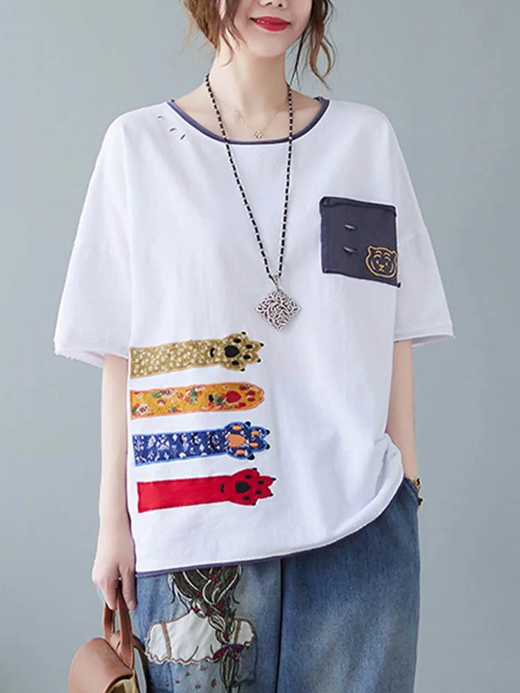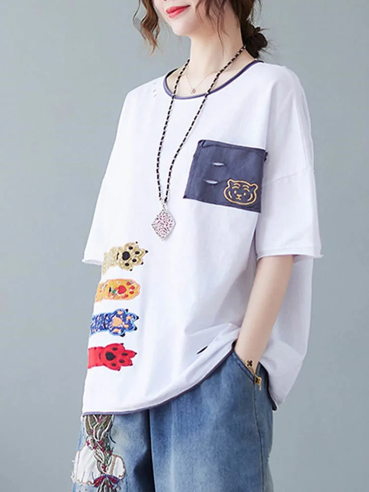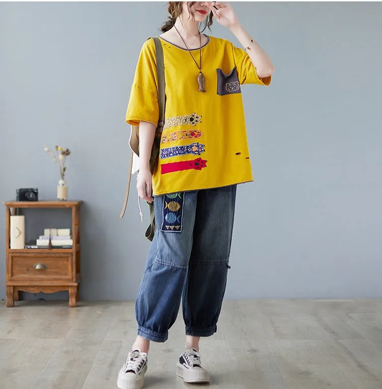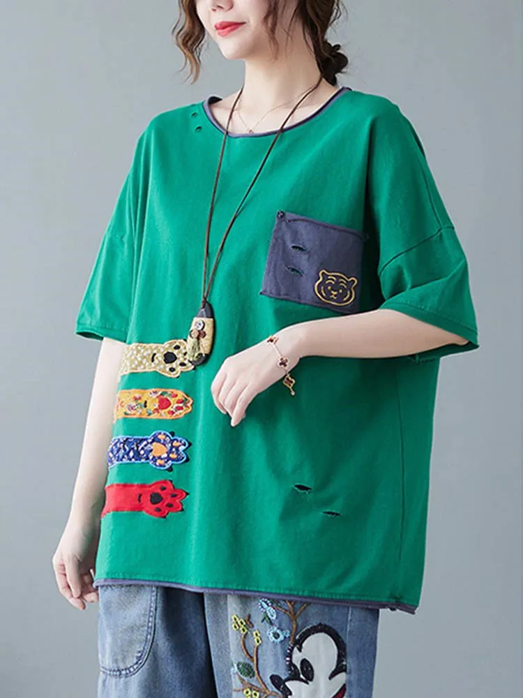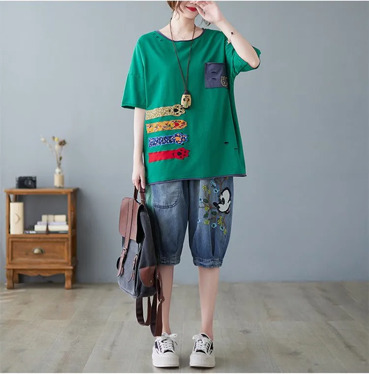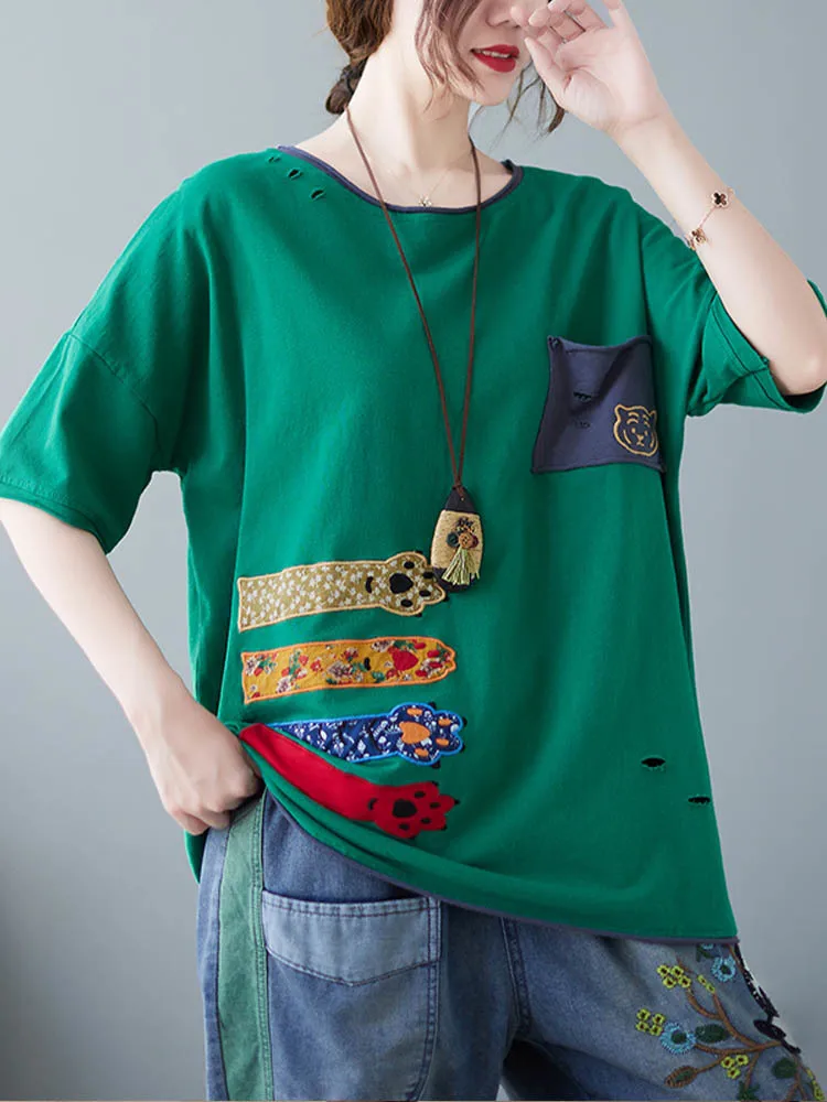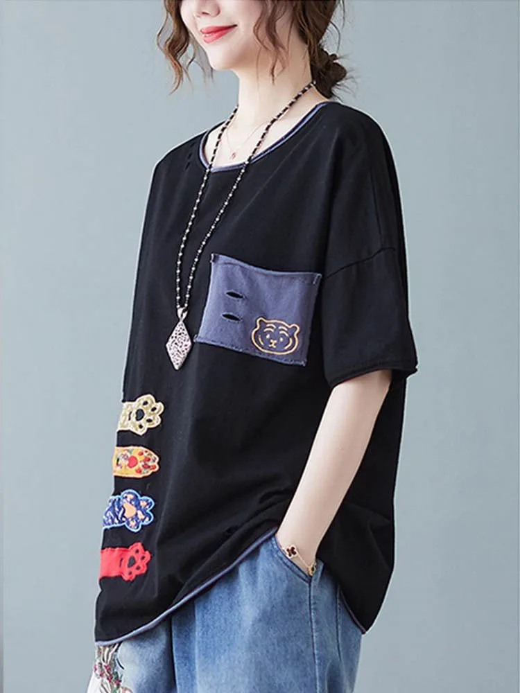 Свободная Лоскутная футболка с вышивкой
