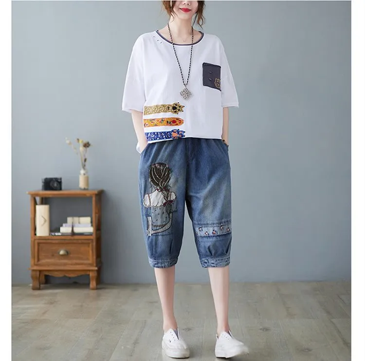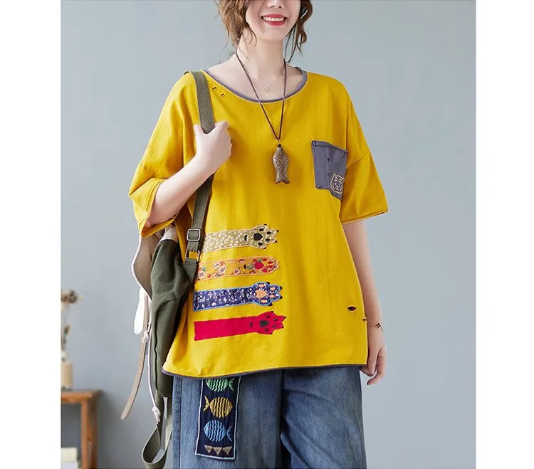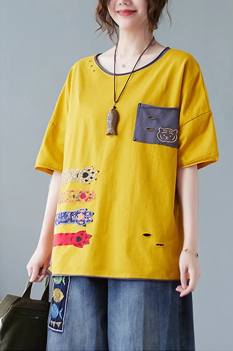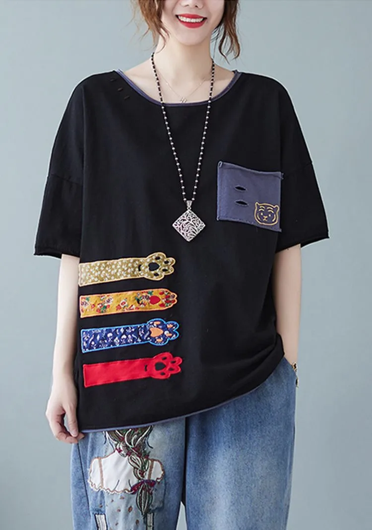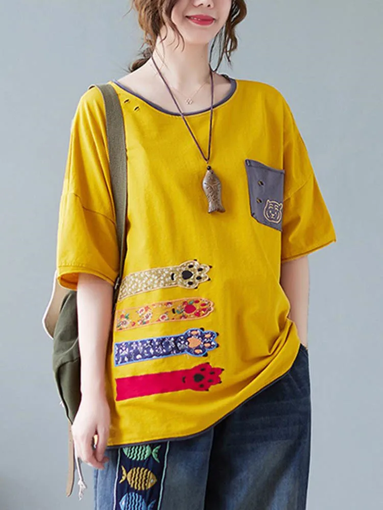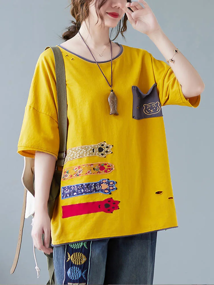 Свободная Лоскутная футболка с вышивкой