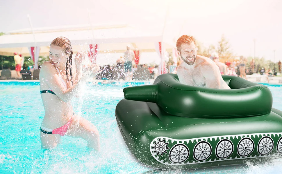Бесконечное летнее водное удовольствие: вы получите поплавки для бассейна для взрослых, надувные игрушки для всей семьи в натуральном танке, пистолет для воды с бесконечным оружием, И армейский тематический бассейн для отдыха и отдыха на солнце с небольшим объемом бюджета, этот надувной армейский Танк для бассейна станет хитом бассейна и пляжных вечеринок для детей, военные вечерние украшения, игры для бассейна. Вы, мальчики, не получите достаточно воды сражения со своими друзьями, создайте уникальную атмосферу для вашего прекрасного праздника.
