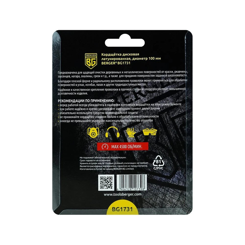 Макс. скорость вращения: 4500 об/мин