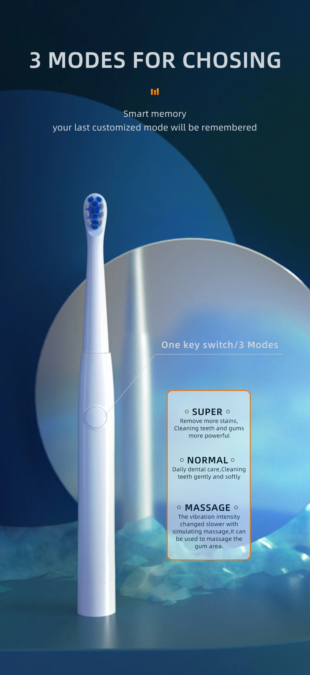 Умный таймер пауза каждые 30 секунд, чтобы напомнить вам изменить диапазон чистки. 2 минуты напоминания о чистке для развития привычки чистки, рекомендованной стоматологом.