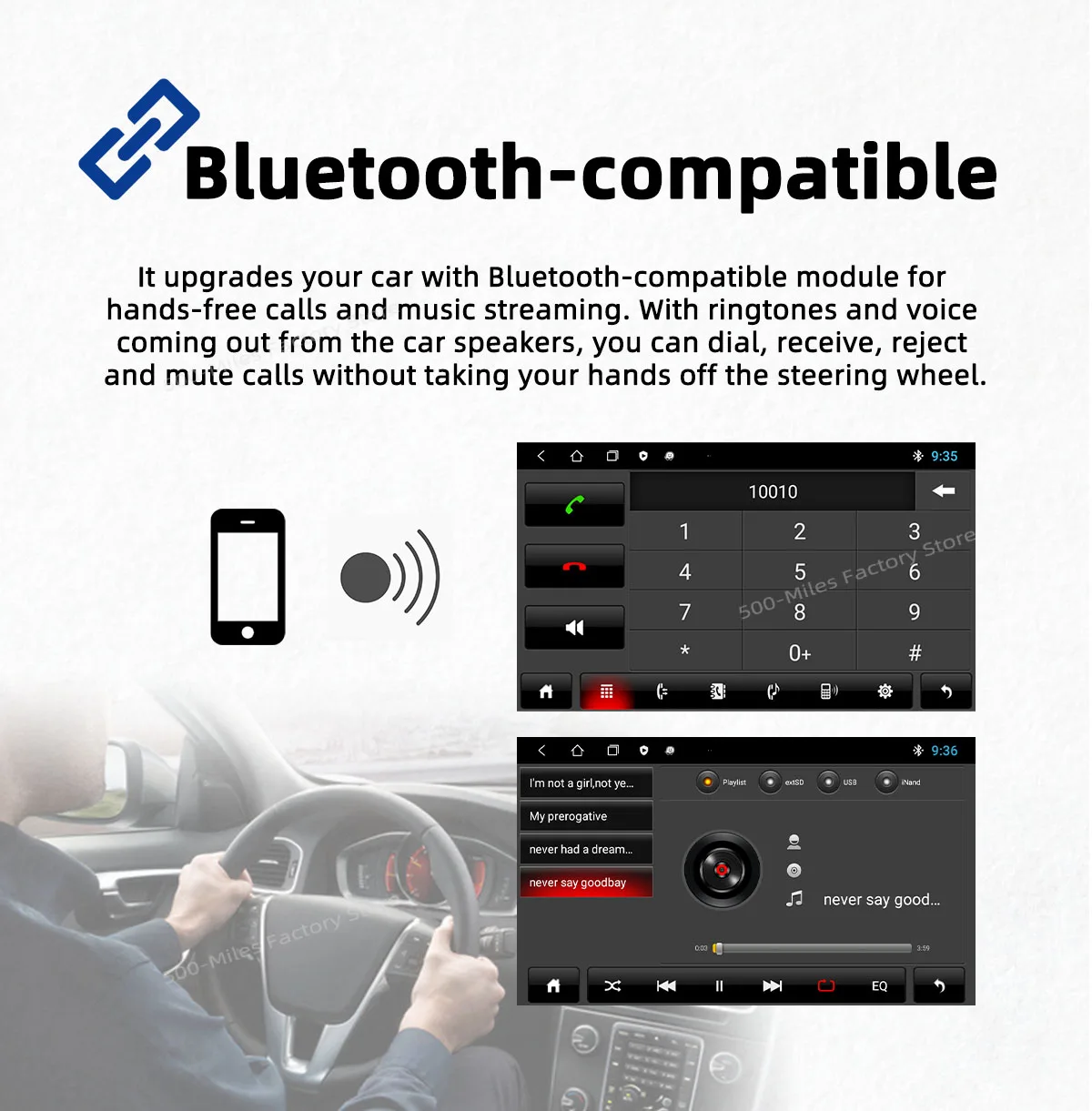 ● Вы можете наслаждаться музыкой с вашего мобильного телефона без каких-либо кабелей, а также поддержка USB connetion.