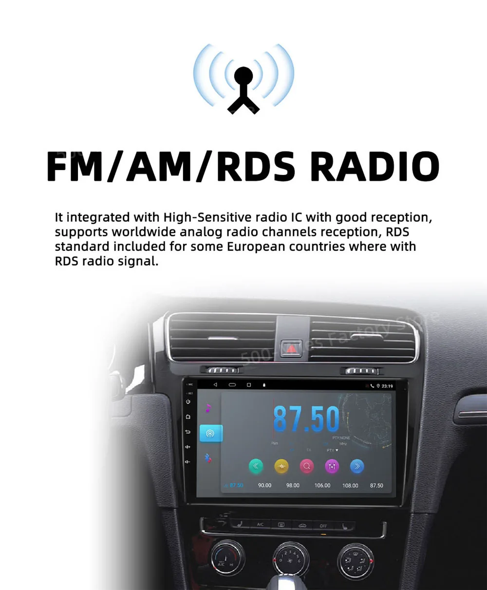 ● Fm-радио: онлайн-музыка вы можете передавать музыку на автомобильную стереосистему FM, чтобы наслаждаться оригинальным стереозвуком автомобиля, с 18 предустановленными станциями