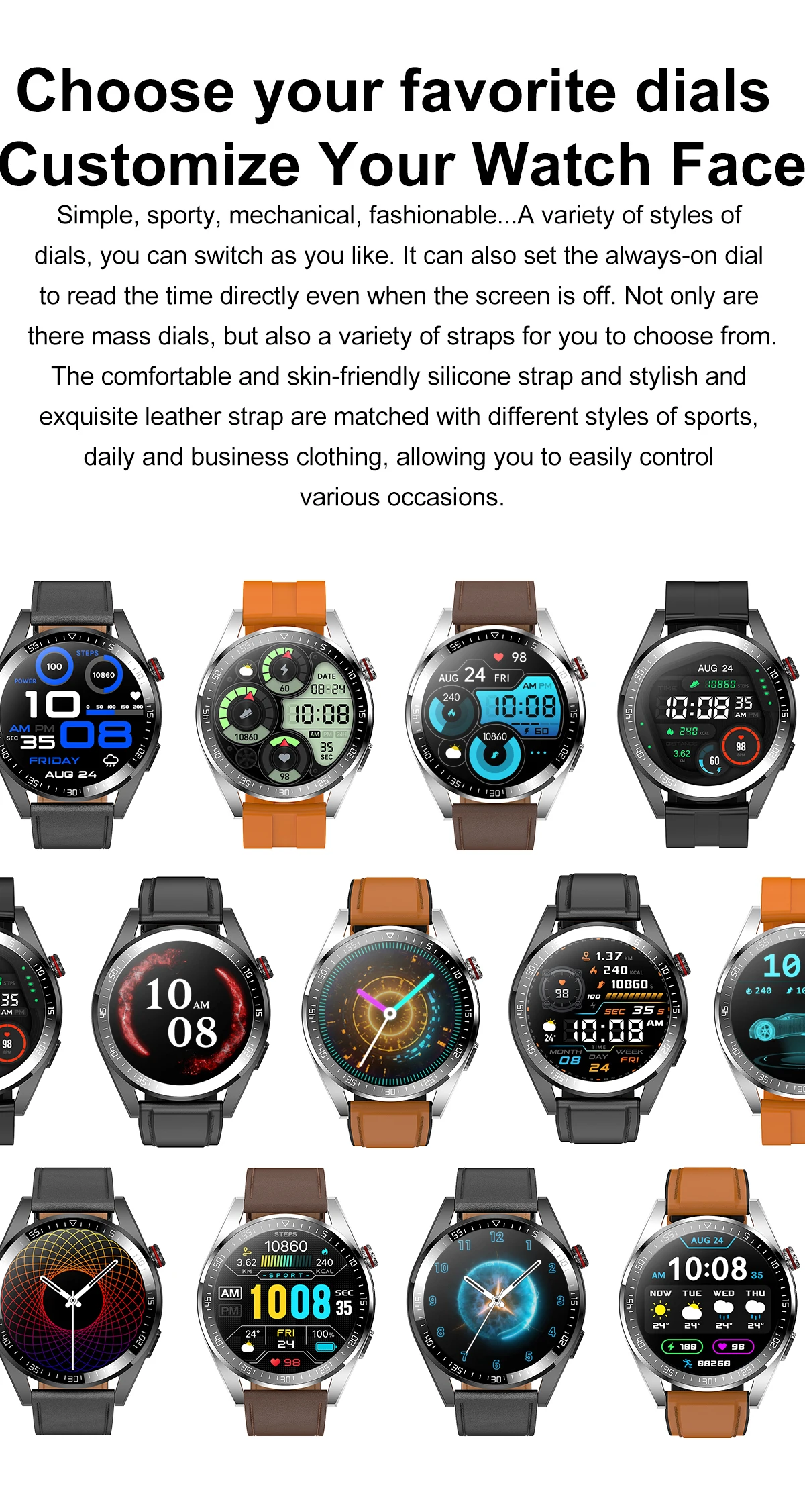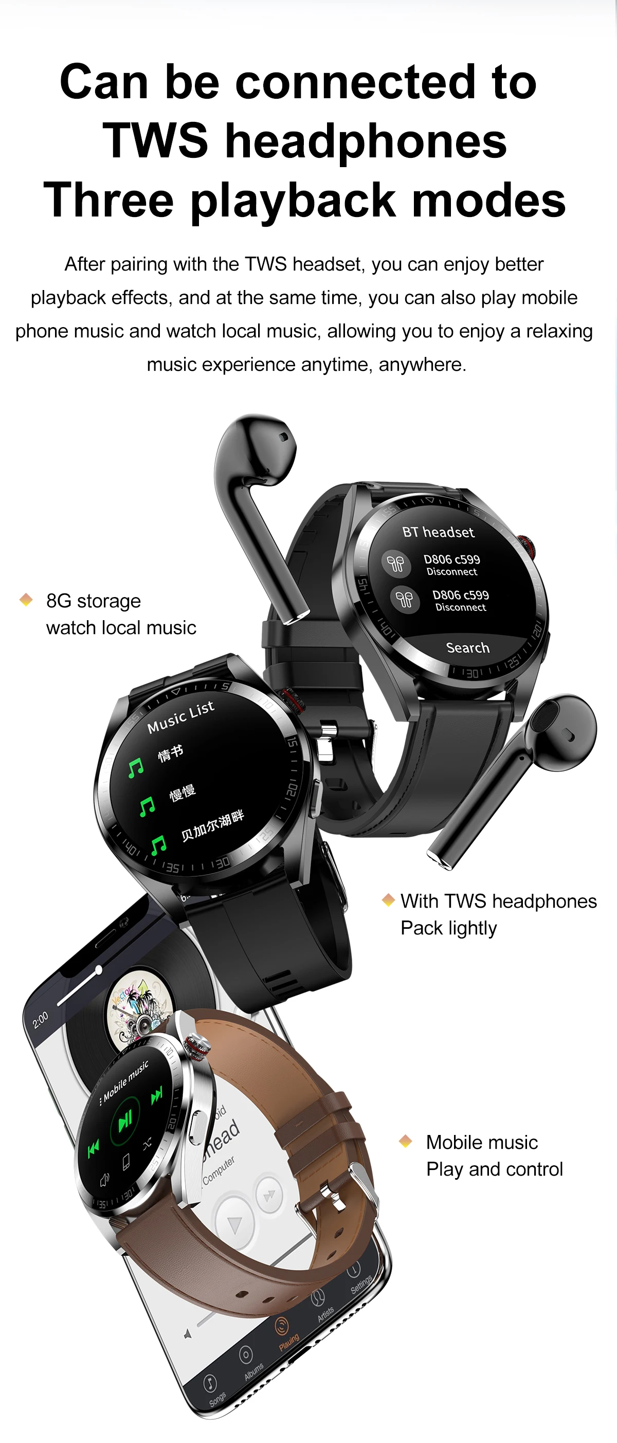 454*454 1,39 дюйма AMOLED полностью умные часы с сенсорным экраном умные часы всегда дисплей Bluetooth Вызов 8 Гб Память HD музыка Смарт для Android IOS