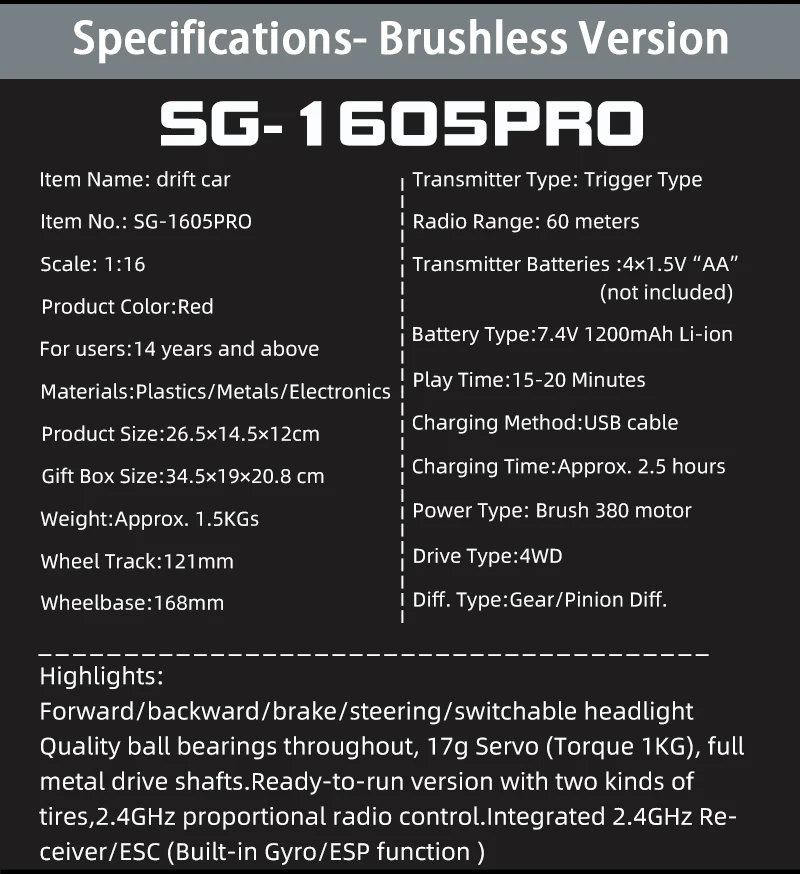 ● Скорость: Бесщеточный около 50-60 км/ч