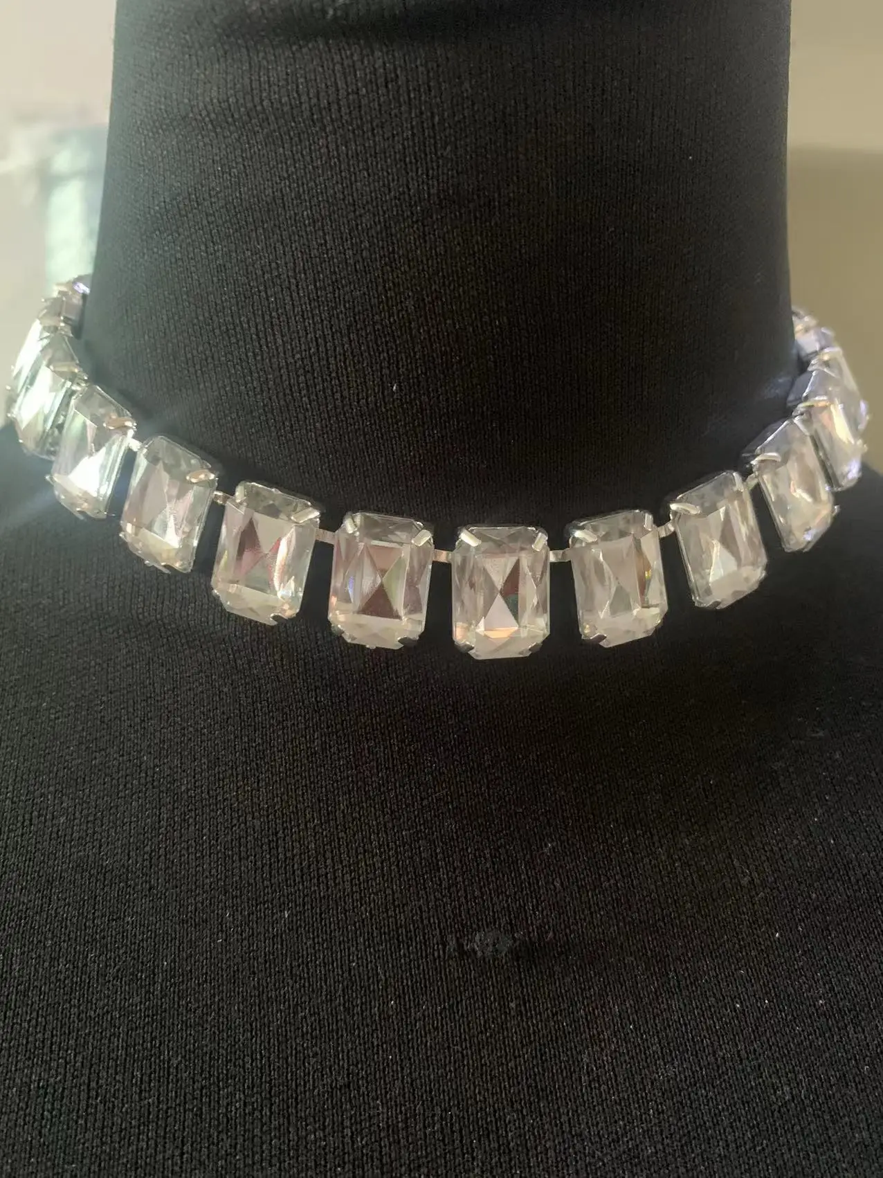 Handmade 6 Ccolors Glass Crystal Necklace Statement Pendant Collar Necklace for Women Rhinestone Large Square Choker Necklace