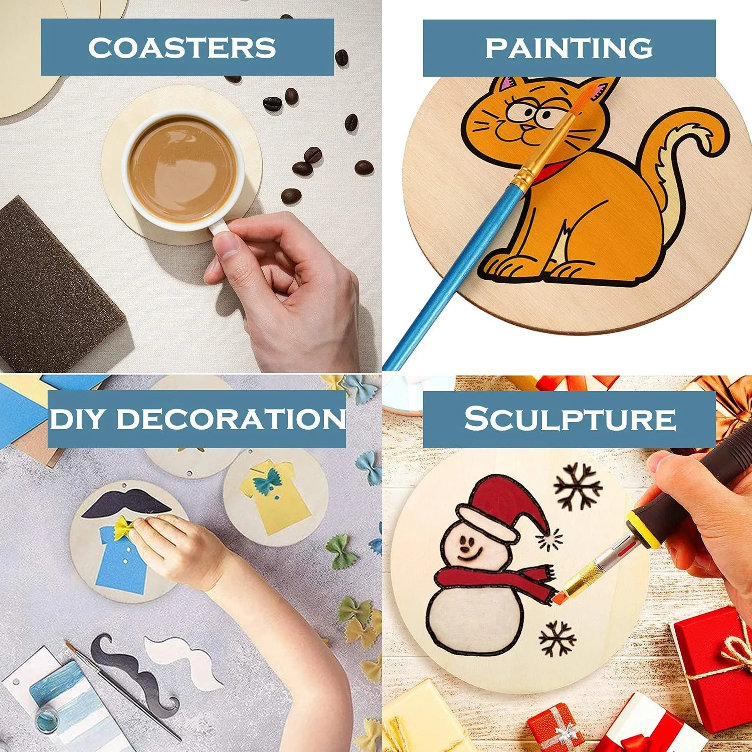 Широко используется: деревянные украшения для украшения и фестиваля, деревянные подставки, деревянные вырезы, Детские диски для рисования, Подарочные бирки, ярлык на день рождения, вы можете добавить свое воображение и создать свои работы!