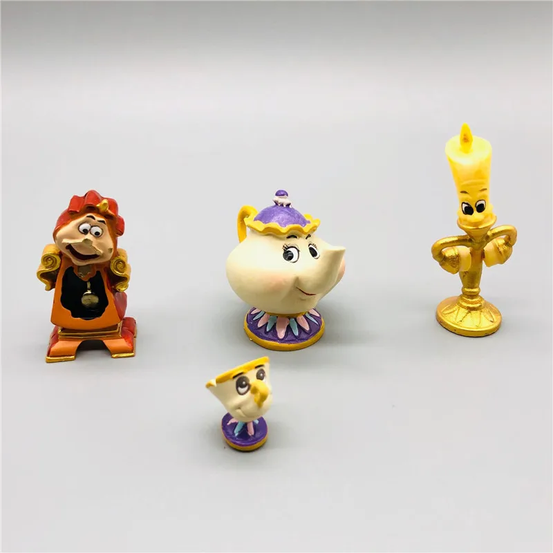 Disney Beauty and the Beast экшн-фигурка игрушка 4 шт./компл. Mrs.Potts Lumiere Cogsworth Аниме фигурки подарки для детей украшение для торта