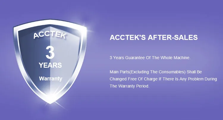 18 месяцев гарантии на основные части (за исключением расходных материалов и не относится к нарушениям работы пользователя), должны быть изменены бесплатно, если есть какие-либо проблемы с качеством в течение гарантийного срока.