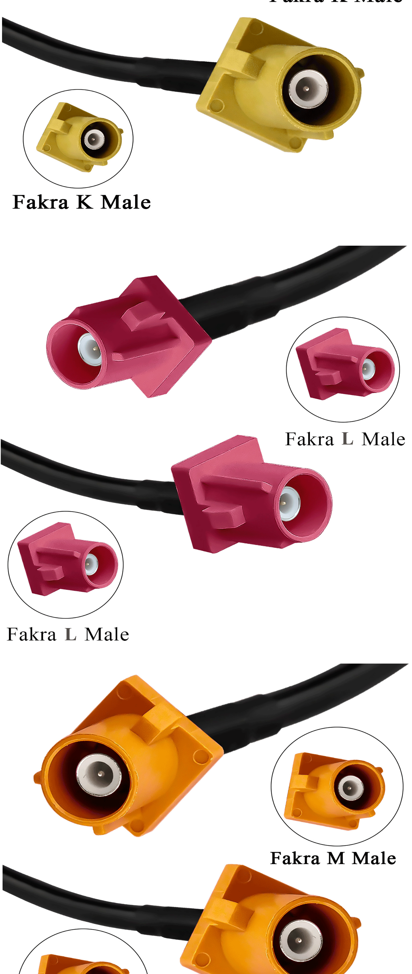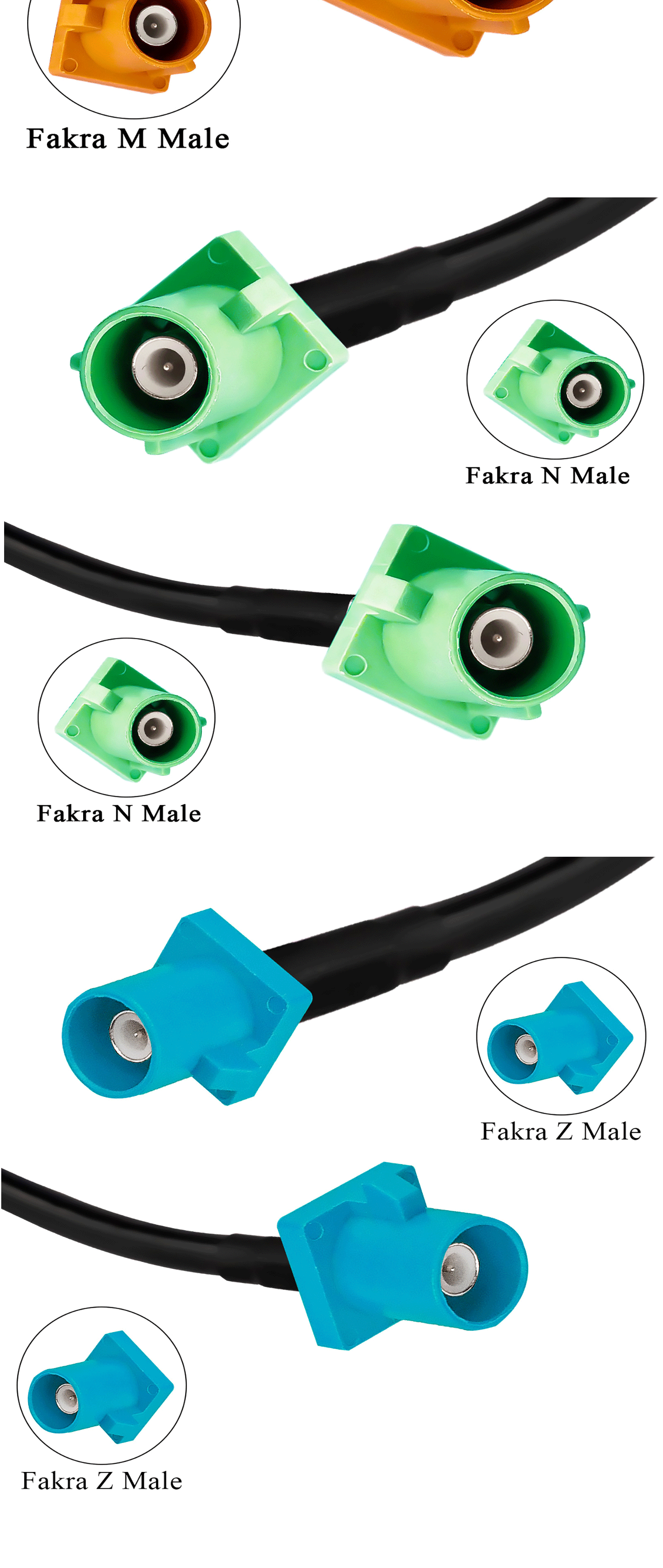 【Тип кабеля и детали 】FakraМужчина к мужчине Коаксиальный кабель; Тип кабеля: RG174; Материал проводника: чистая медь; Сопротивление: 50 Ом, низкие потери
