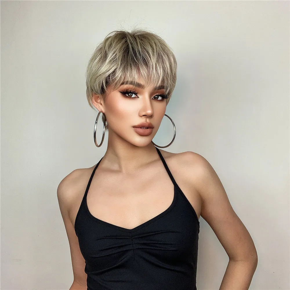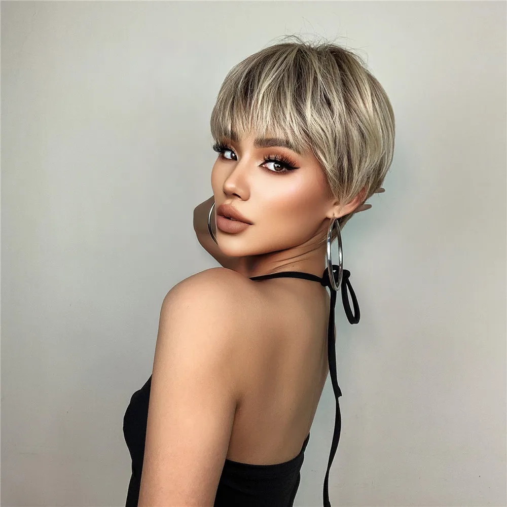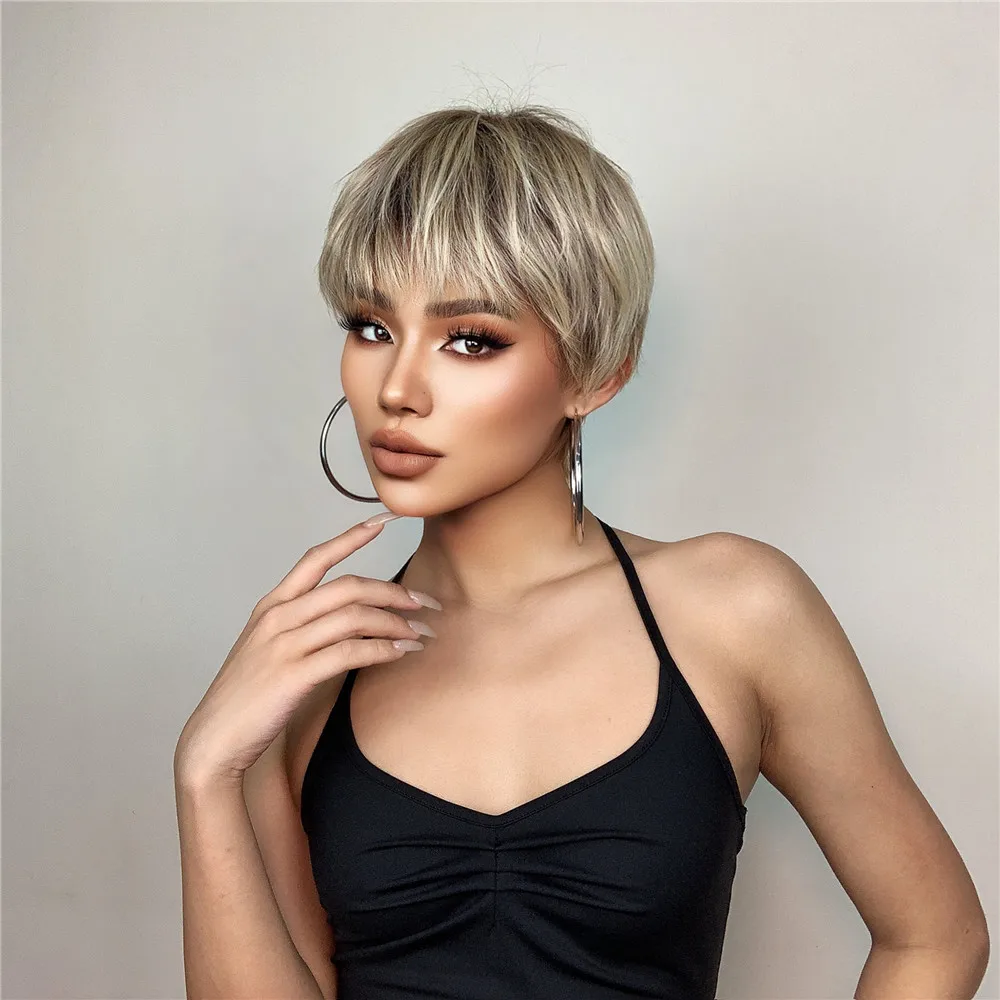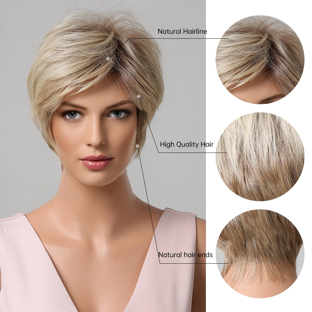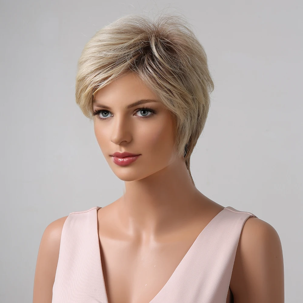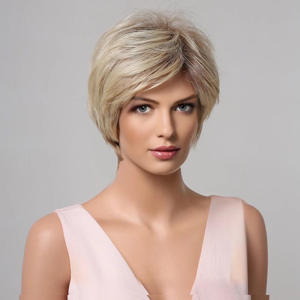 Короткие синтетические парики для белых женщин Луи Ферре, многослойные боковые части, прямой парик из натуральных волос, термостойкие волосы