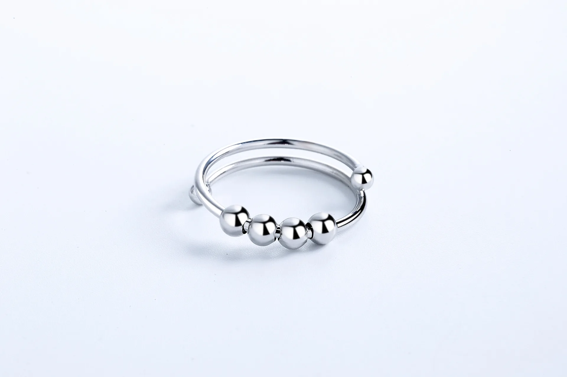 Это изделие является вращающимся кольцом с 4 бусинами на кольце, которое может скользить и вращаться вокруг кольца, чтобы помочь вам расслабиться;