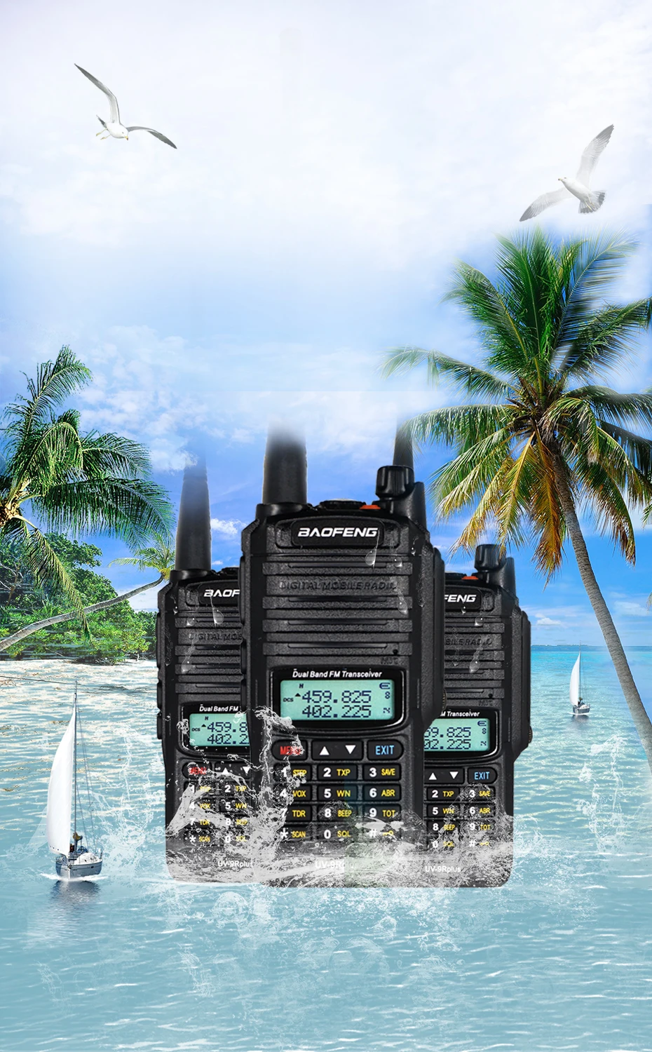 Новая 10 Вт Baofeng UV-9R plus Водонепроницаемая IP67 рация для охоты 50 км Hf приемопередатчик Ham Радио дальний радиус действия CB радиостанция