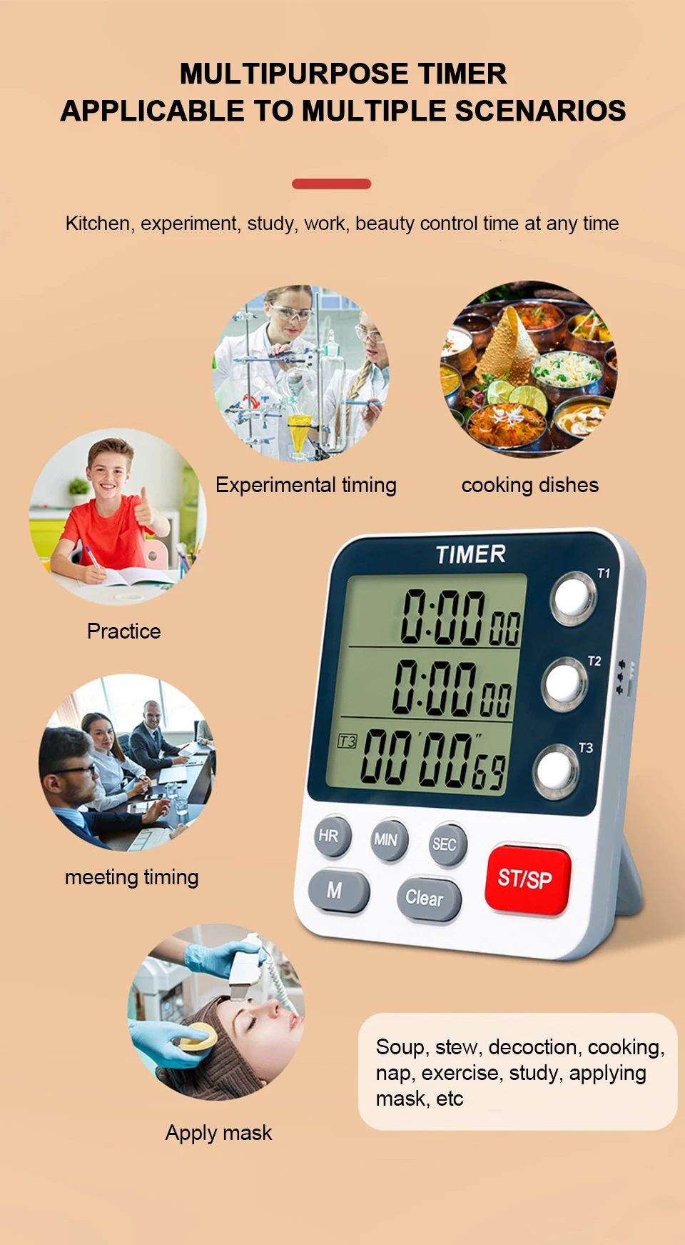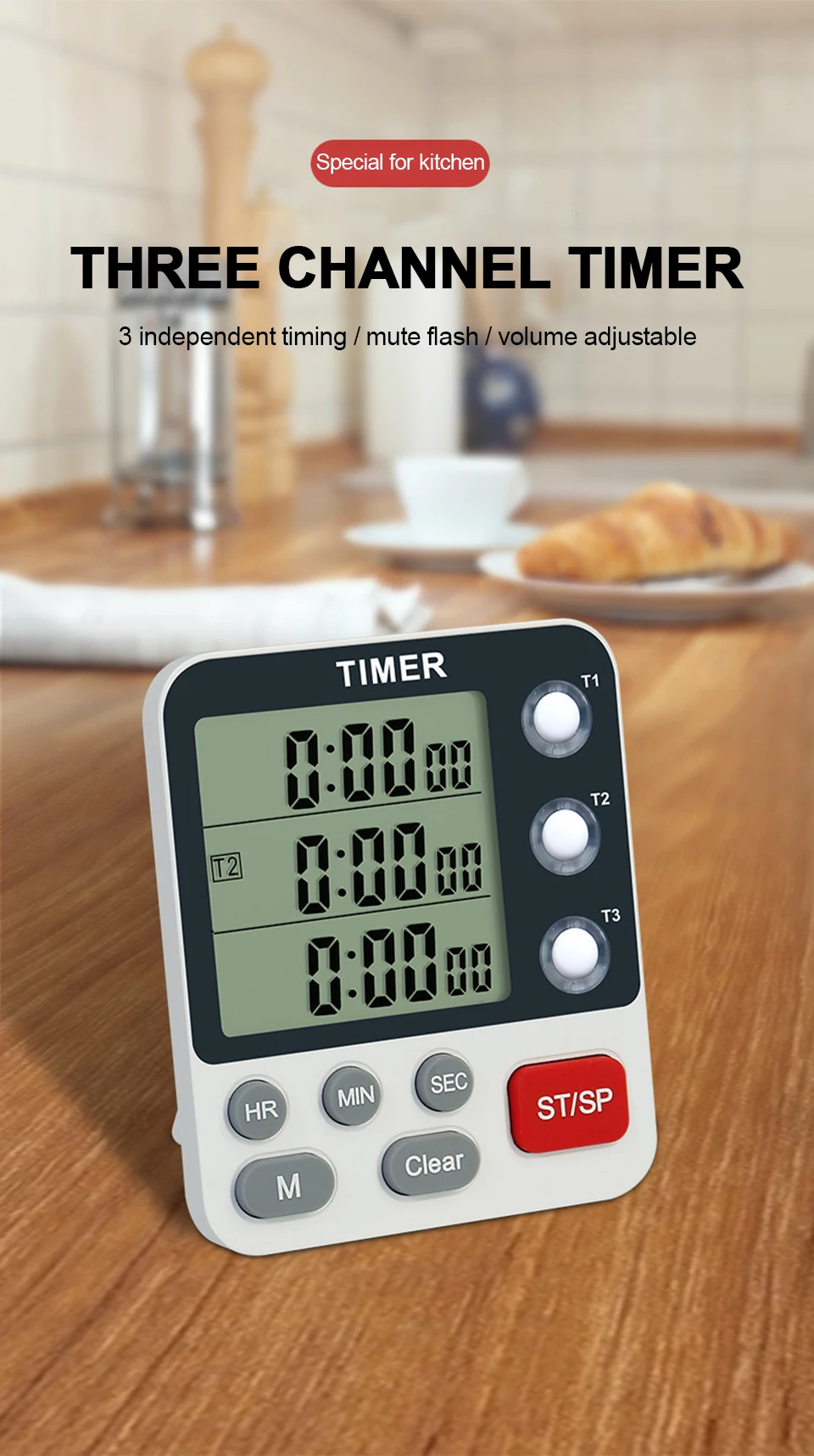 1、3-channel Kitchen Timer: 3-channel kitchen timer.