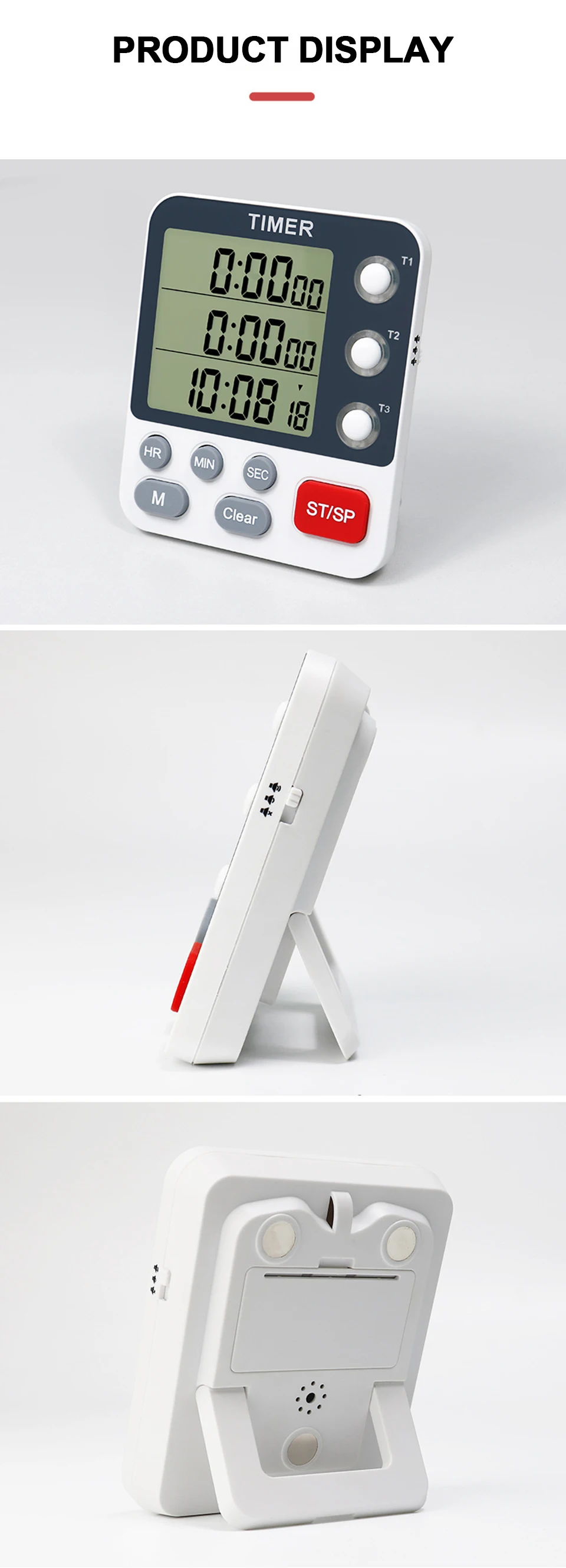 Function: 3 groups of positive/countdown independent timing+ three-speed volume + mute flash + with memory / shutdown