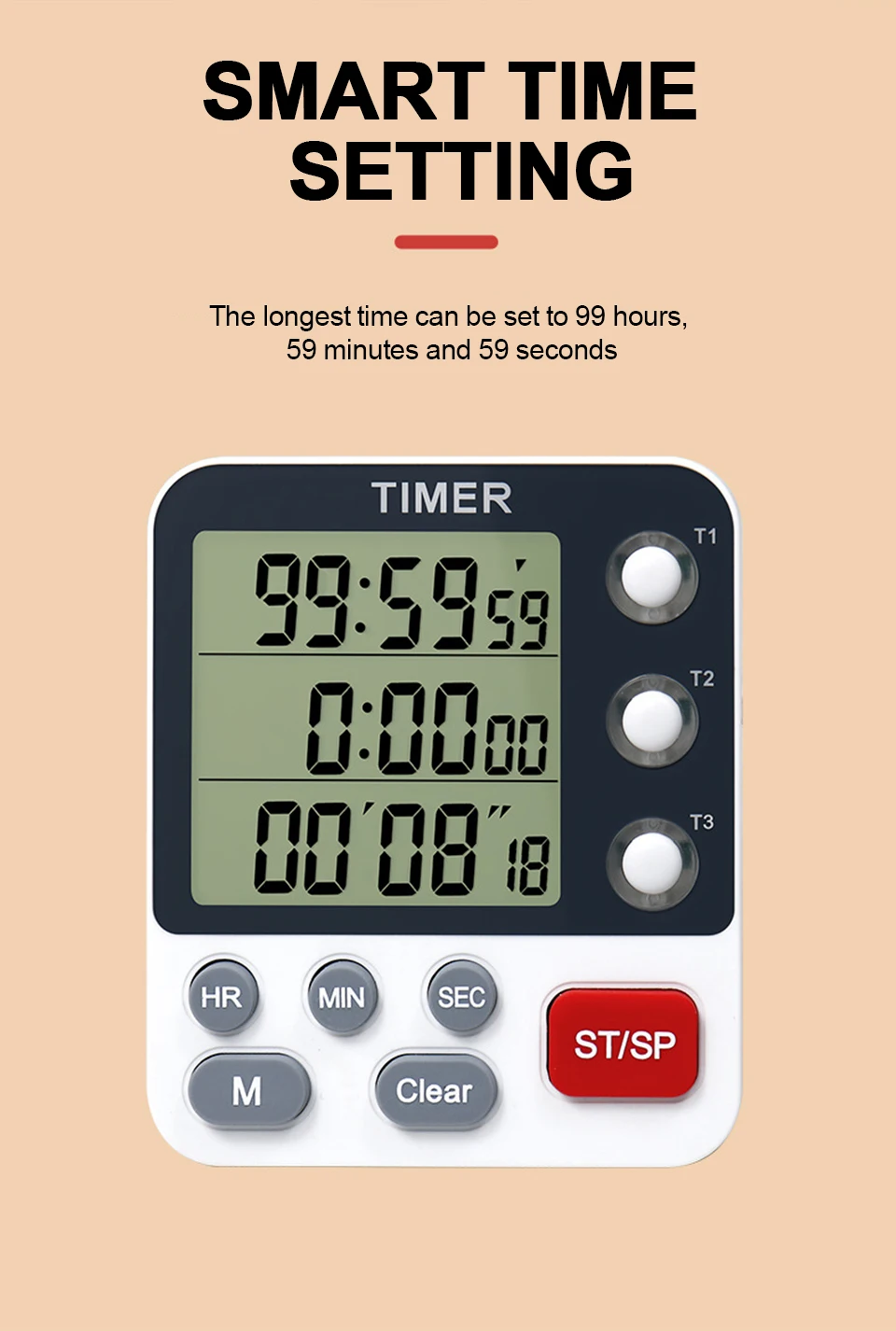 The timer supports 3 groups of positive/countdown independent timing+ three-speed volume + mute flash + with memory / shutdown. It can be set in a wide time range from 00:00:00 to 99 hours, 59 minutes and 59 seconds.