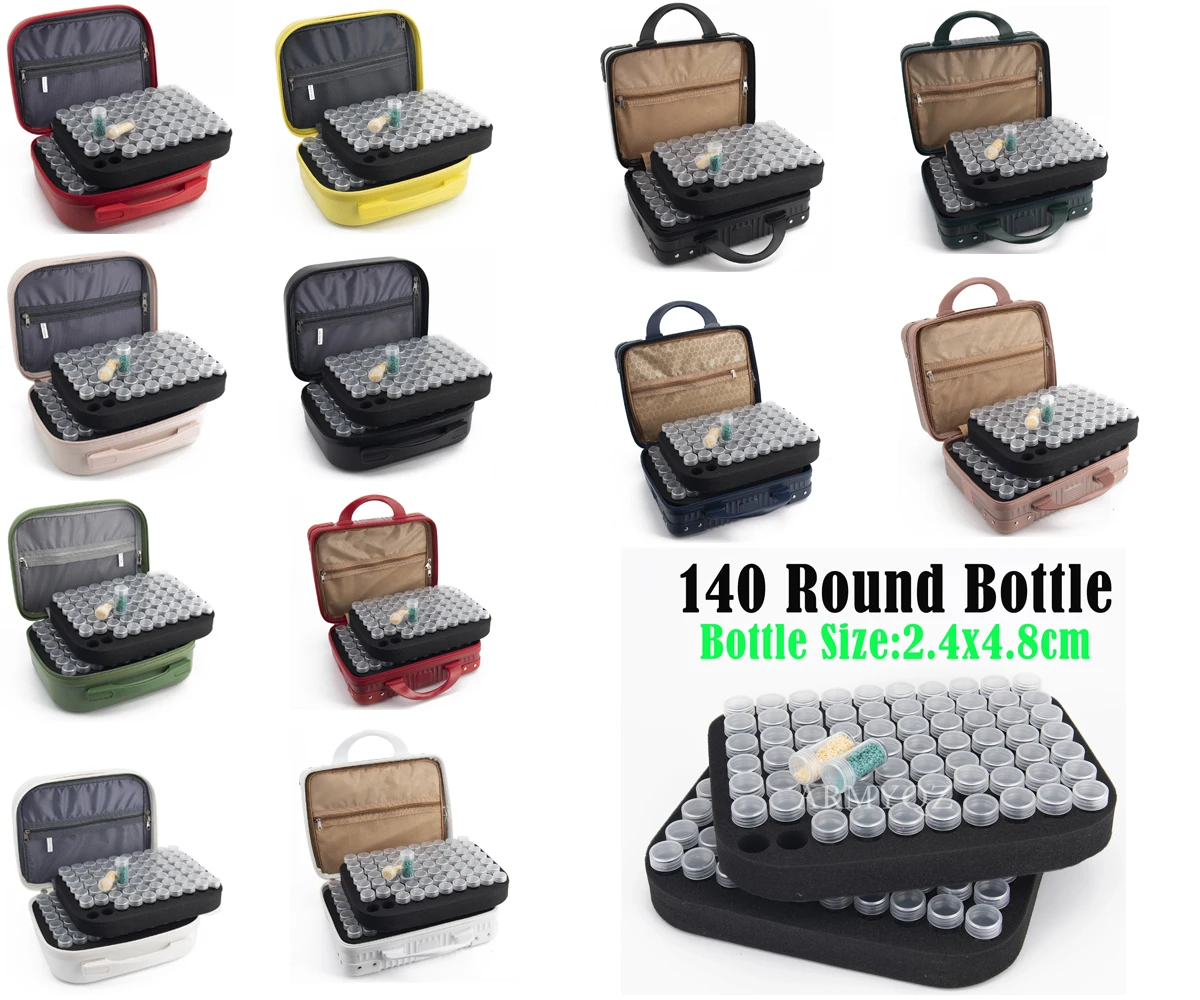 Material: Made of durable EVA material, with waterproof and durable hard shell appearance. There is an 140 slot foam baffle inside to prevent the jar from rubbing or bumping140 individual bottles-There are PDMDOG140 individual small jars in the box, and each jar has a jar with a lid to ensure the safety of the diamond oil painting beans. On the other side of the briefcase, there is also a small mesh bag to store other diamond oil paintings, such as pens, rollers and other tools! Put all handicrafts and beaded items into the bag neatly and orderlyMulti-purpose is ideal for storing the necessities of diamond paintings, but it can also store the tiny materials you need, such as nail decoration, resin, jewelry, beads, rings, amulets, sequins, pills and other small objects. The internal foam is removable, you can use it as a normal suitcaseEasy to store and carry diamond paintings-the bottle is packed in a briefcase with a zipper and can provide a double seal for your diamond beads. It also protects them from dust or rust, and the handle design allows you to easily carry the box wherever you want to goProduct information-box size: (length x width x height): 2.5x4.7 cm ,weight: 1.8.The perfect size package that is easy to carry includes: 1 diamond painting storage box (each box is equipped with 140 independent cans)product descriptionColor: black, pink, blue, redPDMDOG 140-slot diamond painting storage box for storing DIY 5D diamond craft accessoriesfeature:Strong EVA material, strong, waterproof, durable and stylish;The foam inside the pre-cut groove prevents the small jars from contacting each otherEach small tank can hold a capacity of 10~15ml;The convenient handle ensures that you can carry it with you;The zipper design has good sealing, shockproof and anti-fall performance.Multipurpose:This diamond painting bead organizer is perfect for storing diamond painting essentials, nail decoration, cosmetics, jewelry, beads, necklaces, rings,Amulets, flashes, pills, pills and various other items;You can also use the small lattice as a travel kit to store some personal care products (such as hair spray), skin care products (such as cream) for travel;The internal foam is detachable and can be used as an ordinary suitcase by removing itto This is a good gift for friends or family who like diamond painting, nail art, etc.The package includes:1 x diamond painting storage box (each box comes with 140 separate grids)note:Due to manual measurement, the difference is 1-2 cm;Due to the difference in light and screen, the color of the product may be slightly different from the picture.