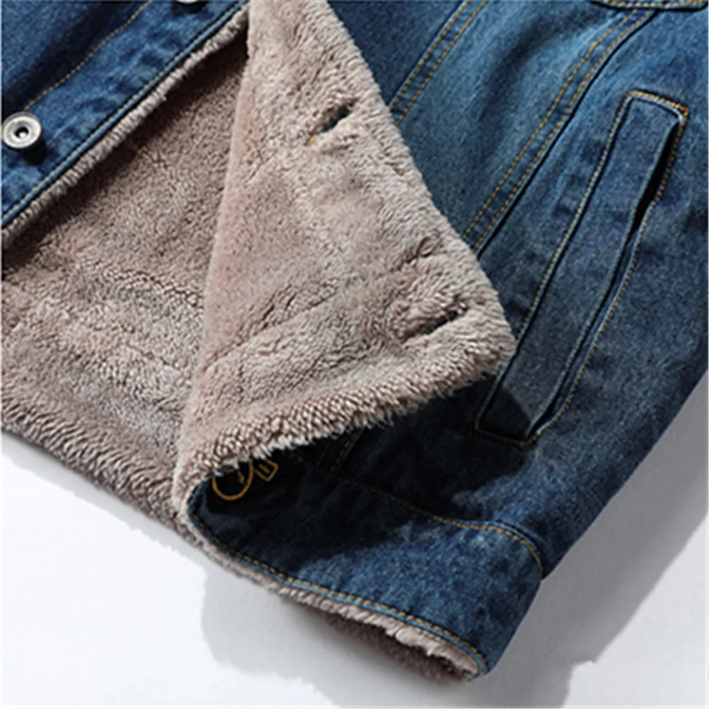 New Jean Jacket Men Thick Street Denim Bomber Jackets Coat Male Vintage Blue Men's Outwear Plus Velvet Single Breasted Windbreak
