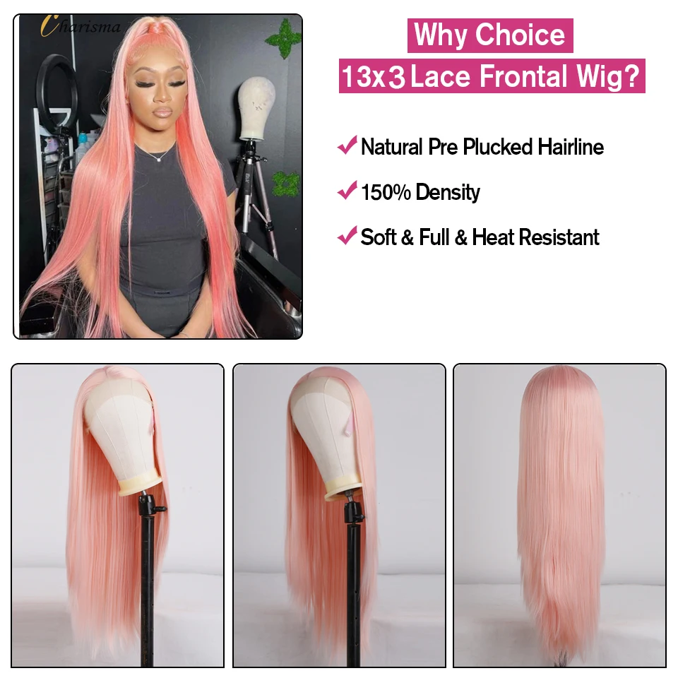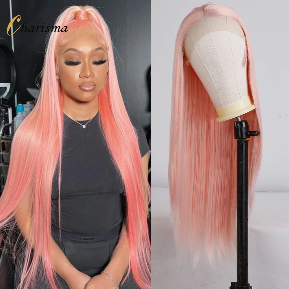 Charisma Silky Straight Synthetic Hair Lace Front Wig 26 Inch Long Wigs Pink Heat Resistant Fiber Lace Front Wigs For Women