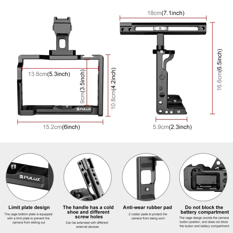 3. Эта клетка поставляется с несколькими монтажными точками, ручка снабжена резьбовыми отверстиями 1/4 и 3/8, холодной обувью, легко устанавливается аксессуары.