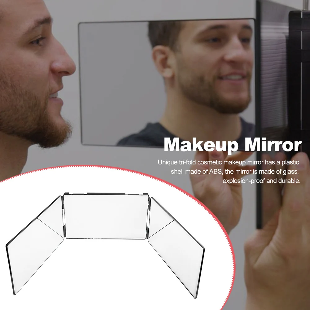 Material: Unique tri-fold cosmetic makeup mirror has a plastic shell made of ABS, the mirror is made of glass, explosion-proof and durable.