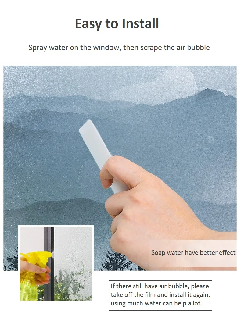 Normally we will send you STATIC CLING translucent frosted film in default, if you need other material film,