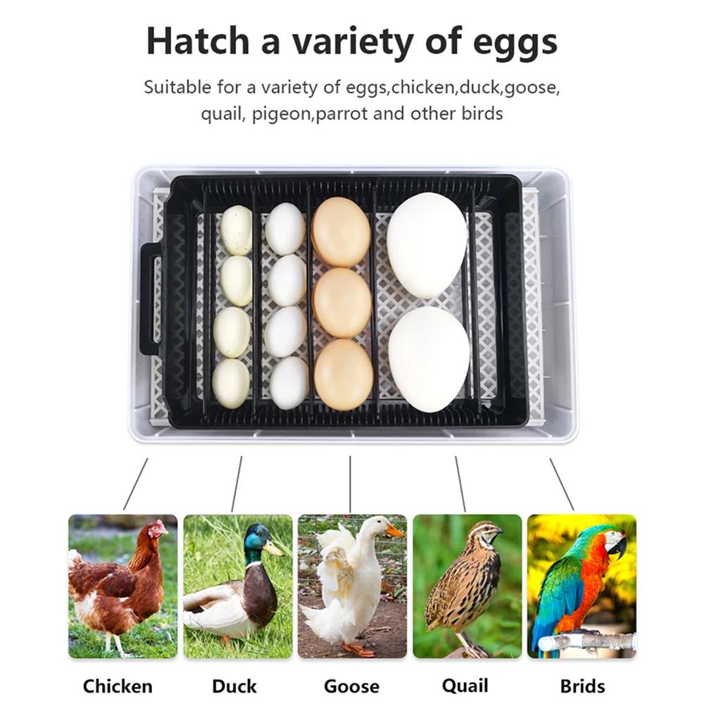 5. Простота обслуживания-блистерный лоток на поддоне для яиц может сохранять пятна во время инкубации, и поднос может быть удален для легкой очистки; Инкубатор небольшого размера, Экономьте место после использования; Идеально подходит для инкубационной птицы, такой как куры, утки, попугаи, перепелы или голуби, также подходит для детей, чтобы веселиться и осмыслить Время