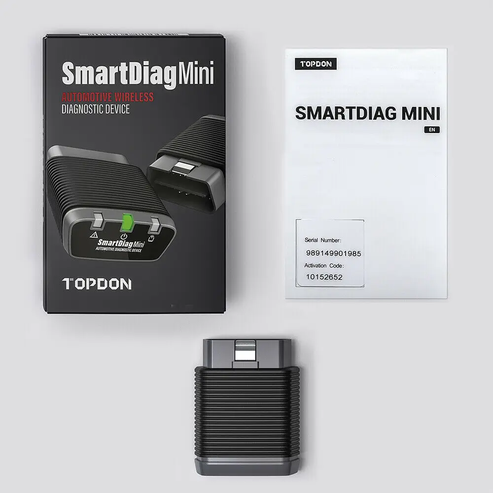 Почему стоит выбрать Topdon SmartDiag Mini? ①Поддержка системной диагностики более 130 брендовых моделей; ②Поддержка функций чтения информации версии, чтения кодов неисправностей, очистки кодов неисправностей и чтения потоков данных во всей системе, а также бесплатное обновление для жизни; ③ 8 часто используемых специальных функций бесплатны в течение первого года, а плата за обновление для 8 одновременно в следующем году составляет всего 39,95 долларов США; ④AutoVIN автоматически распознает транспортное средство и проводит быструю диагностику; ⑤Беспроводная Диагностика Bluetooth VCI.
