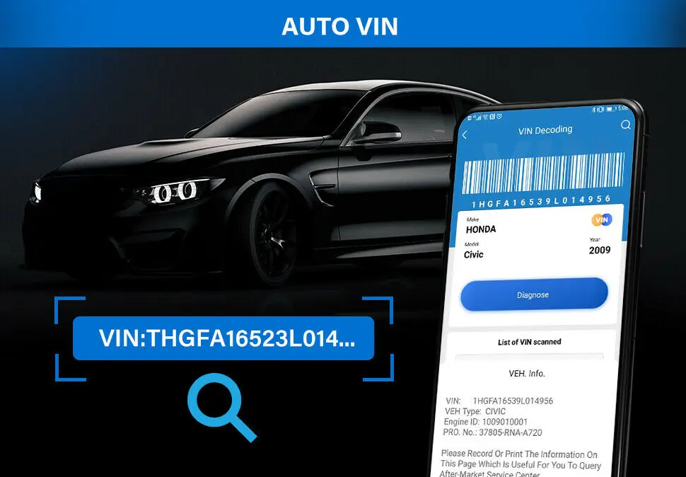 Все, что вам нужно, это подключить адаптер сканера obd2 и запустить AutoVIN одним касанием.