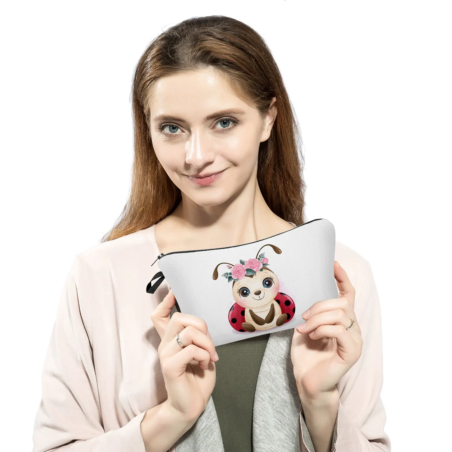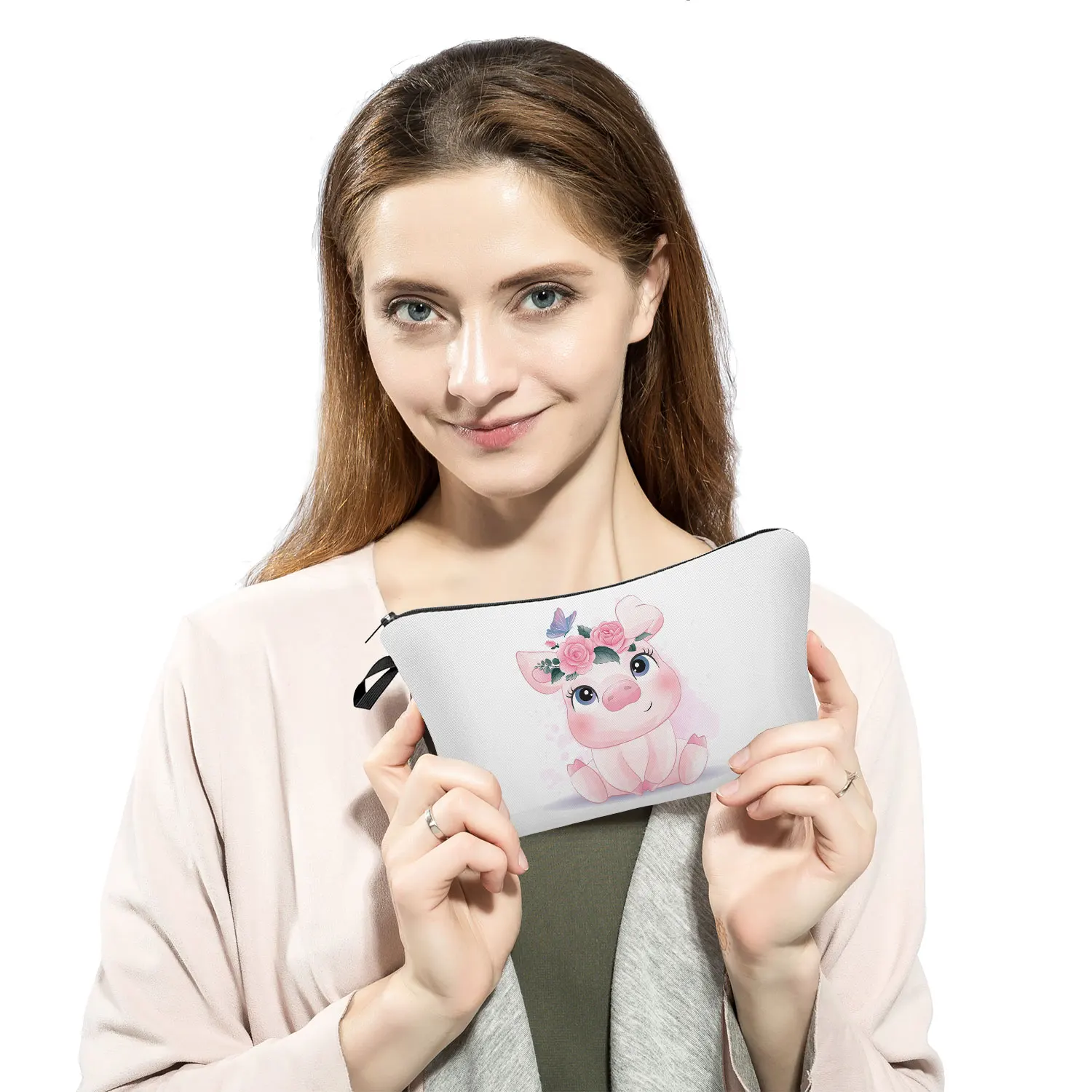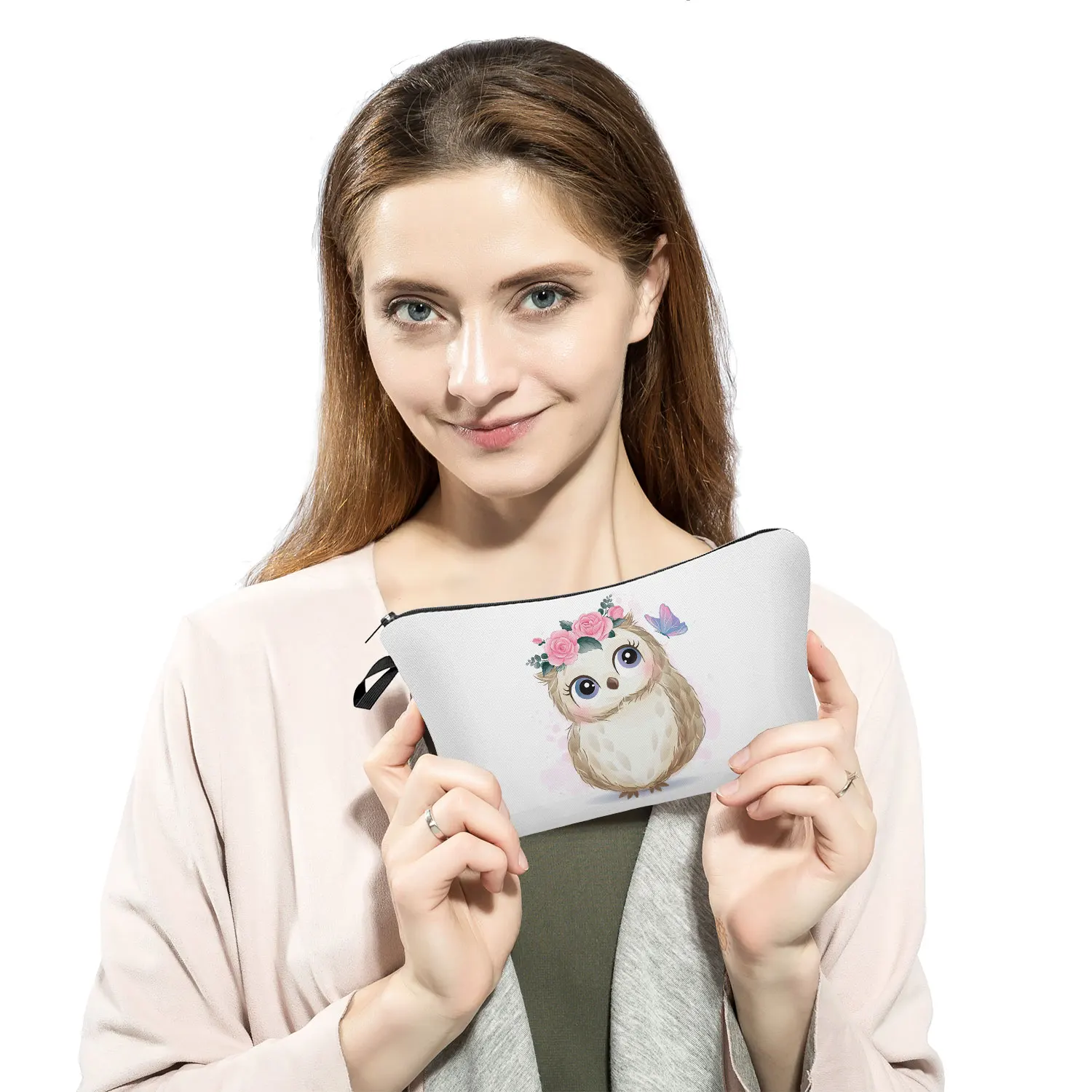 Cute Cartoon Animal Print Women's Cosmetic Bag Kawaii Pig Owl Sloth Dog Parrot Pattern Makeup Bag Heat Transfer Lovely Organizer