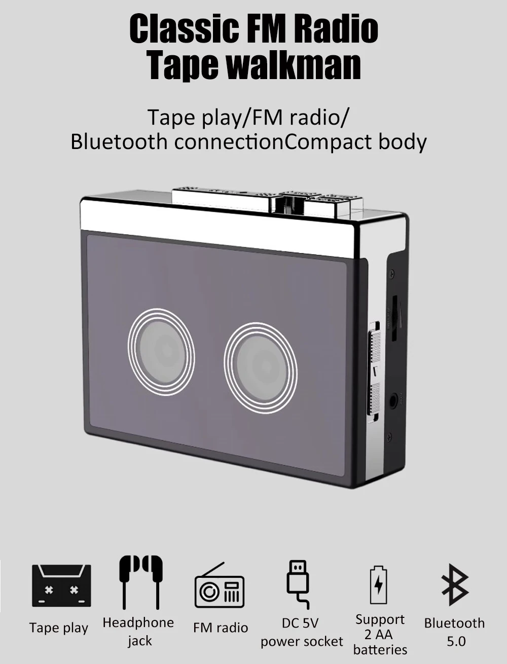 Мини Ретро fm-радио портативный Bluetooth 5,0 кассетный плеер Карманный классический ленточный плеер уличный музыкальный Walkman с разъемом для наушников