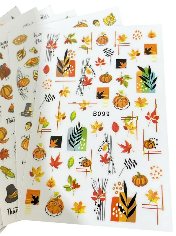 12 шт Тыква кленовый лист наклейки для ногтей 3D осень самоклеющиеся благодарения Турция наклейки s наклейки для ногтей DIY маникюр слайдеры