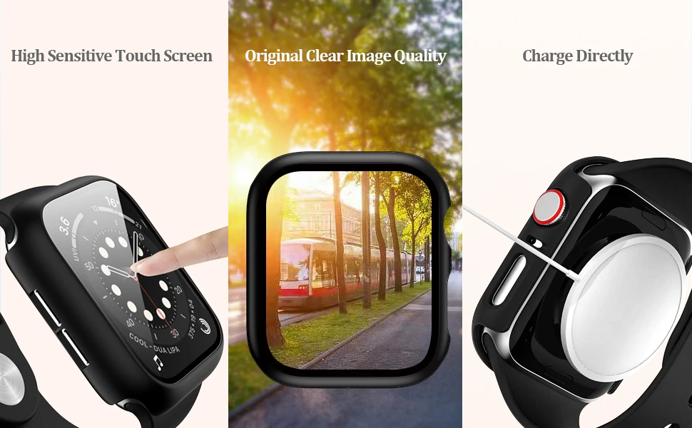 [Высокочувствительный сенсорный]: Этот чехол apple watch с высокочетким закаленным стеклом для защиты экрана не мешает любому удобству использования экрана, что обеспечивает Оригинальное четкое качество изображения и оригинальную чувствительность к прикосновениям. Лучший выбор!
