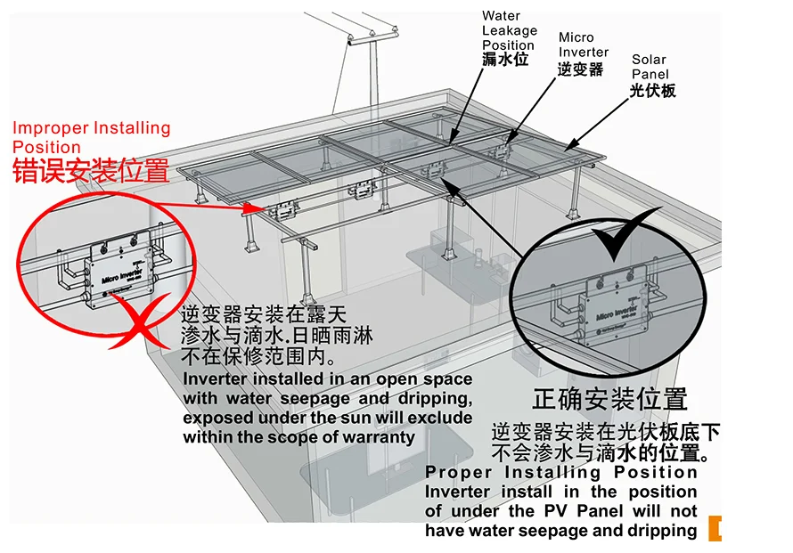 Правильное место установки:Избегайте солнечного света-при установке инвертора, вам нужно избегать прямых солнечных лучей, чтобы вызвать чрезмерную температуруИзбегайте дождя-установка инвертора должна предотвратить дождь или промокание другой жидкостиДержите вентиляцию-инвертор должен быть установлен в хорошо проветриваемой среде, чтобы облегчить тепловыделение![]()