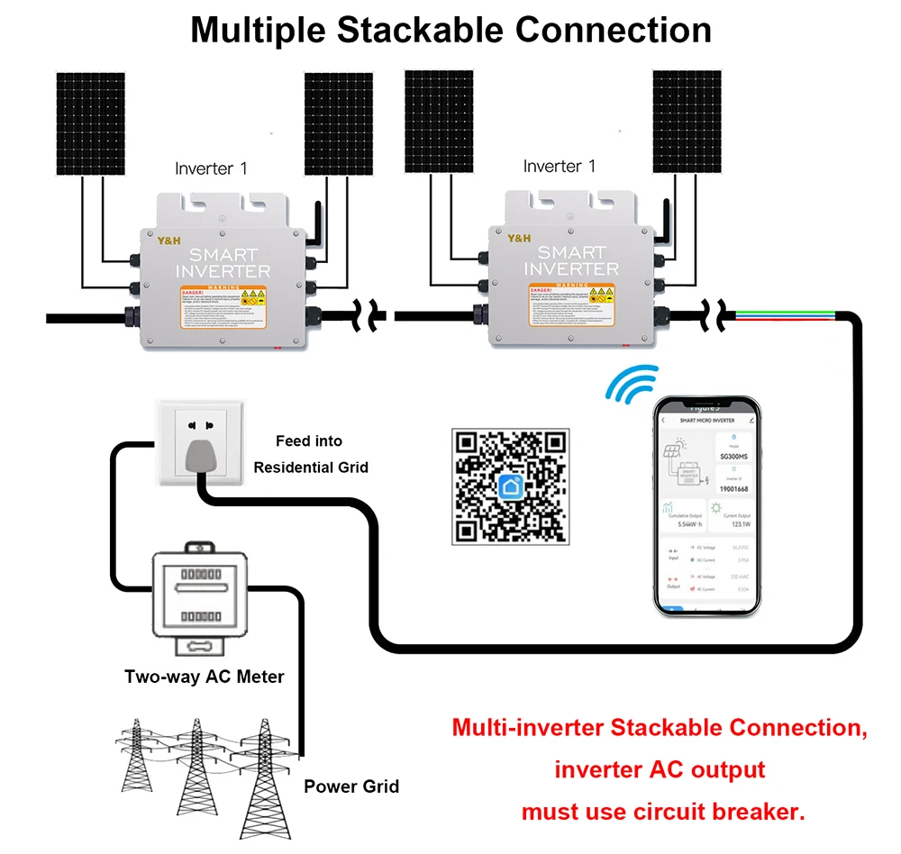 Y & H 600 Вт 700 Вт сетевой микро инвертор с WIFI коммуникацией водонепроницаемый MPPT Штабелируемый DC30-60V Солнечный вход ac220в чистая Синусоидальная волна выход для 30 в 36 В PV панели